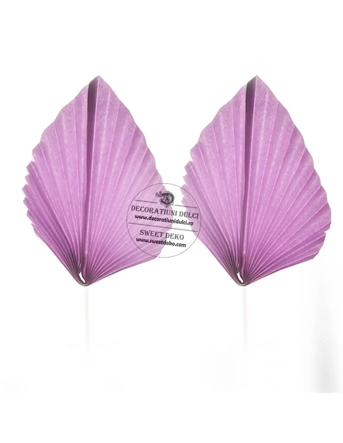 Decor tort din carton, set 2 frunze de palmier mov sidefat