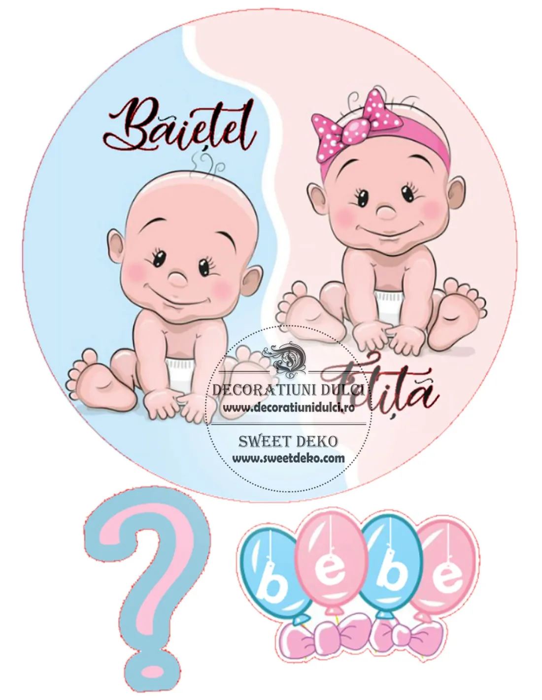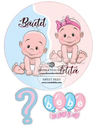 Coala de zahar, imprimata cu cerneala comestibila, pentru a crea tortul perfect, Imaginea comestibila "Baietel sau Fetita?", marcheaza cel mai emotionant moment, prin care poti dezvalui familiei vestea cea mare. Aceasta hartie este cu putin mai groasa decat o coala normala. Poate fi asezata pe: fondant, martipan, frisca vegetala, crema de unt, creme tip oglinda (NU frisca naturala).