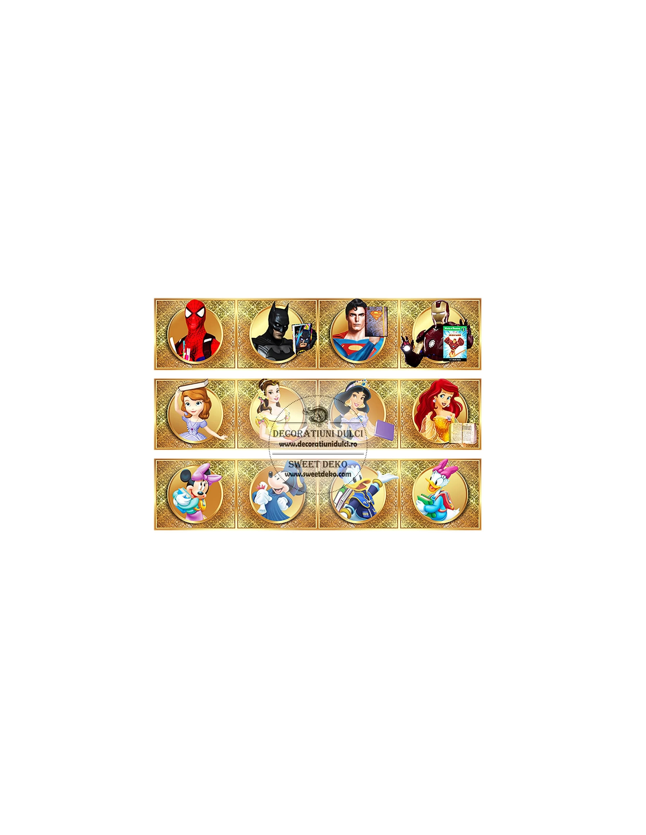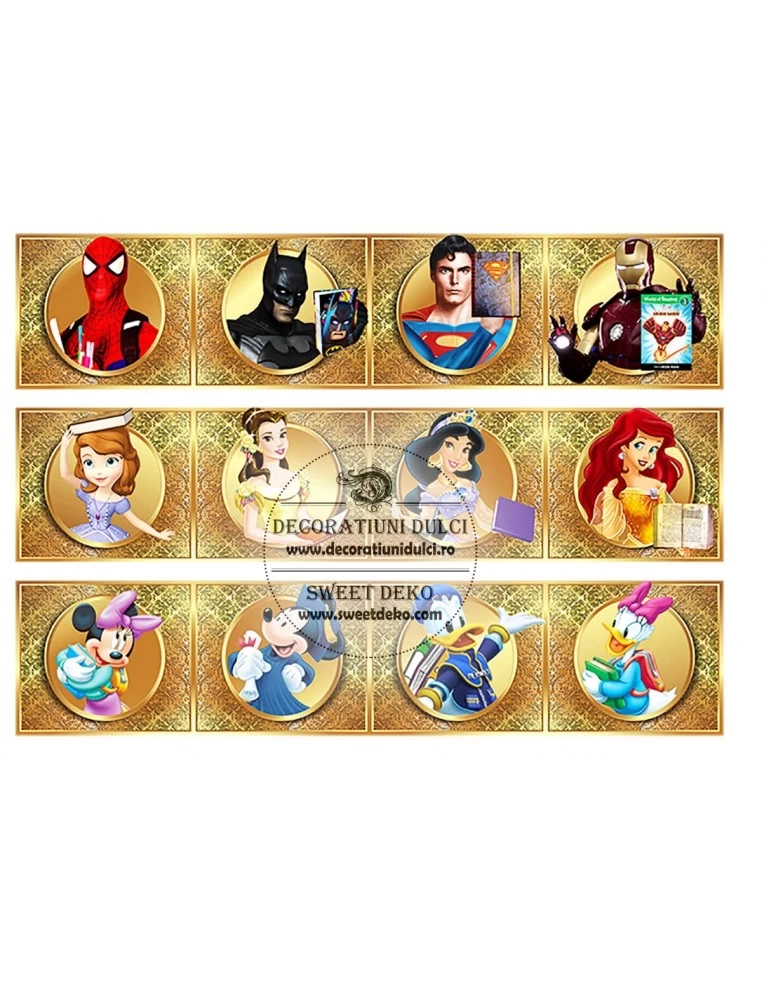Imagini in forma de benzi, cu eroii din desenele animate pentru decorarea laterala a torturilor pregatite pentru gradinita sau scoala.