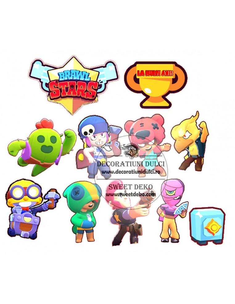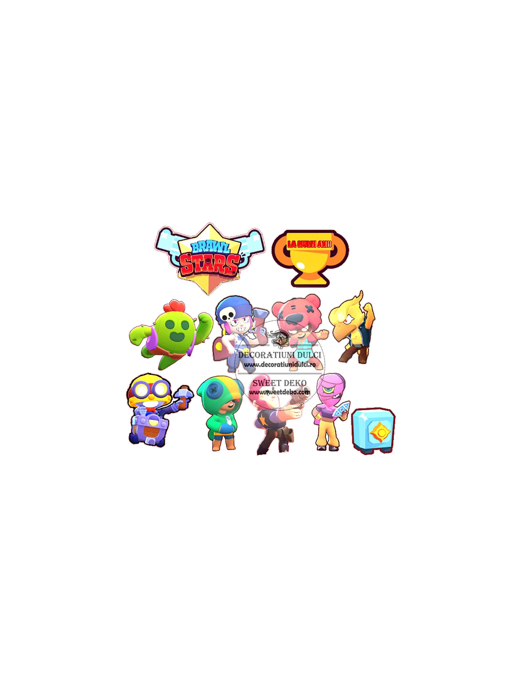 Imagine comestibila, Brawl Star, imprimata pe foaie de icing, utilizata pentru decorarea torturilor. Aceasta hartie este cu putin mai groasa decat o coala normala. Poate fi asezata pe orice material de acoperit: fondant, martipan, frisca vegetala, crema de unt.