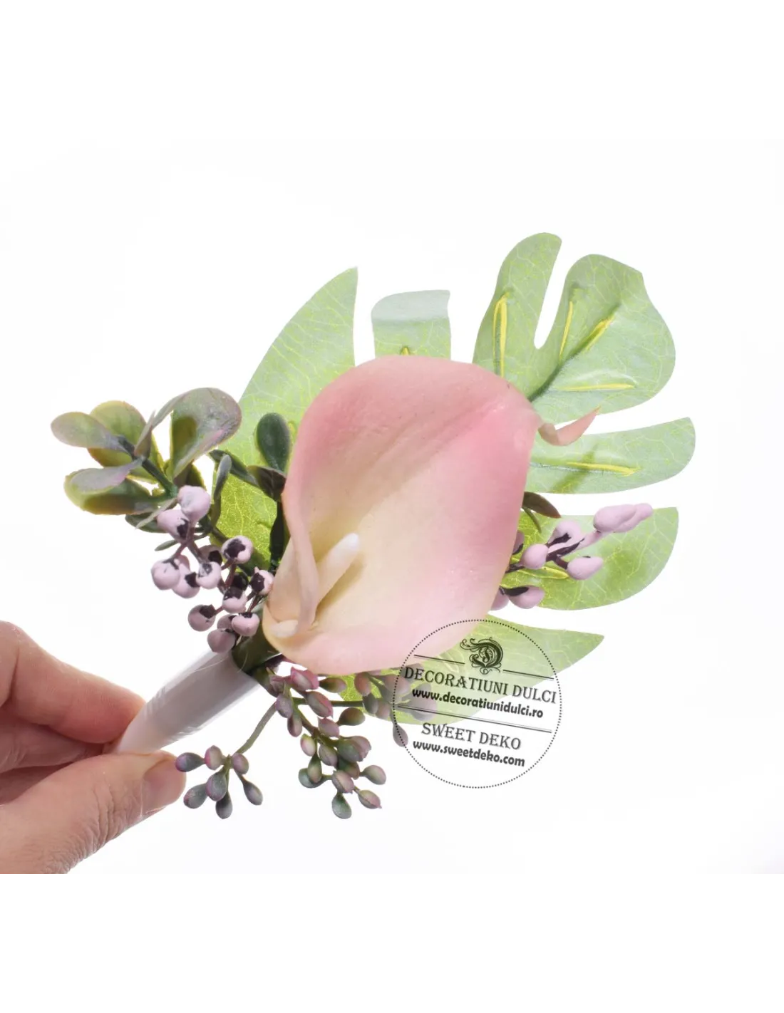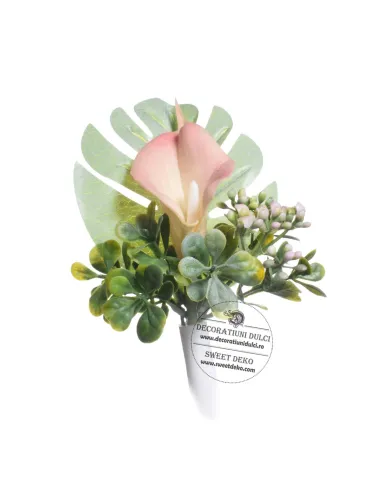 Acest buchetel cu cala roz, necomestibil, nu necesita conditii speciale de pastrare si nu expira.