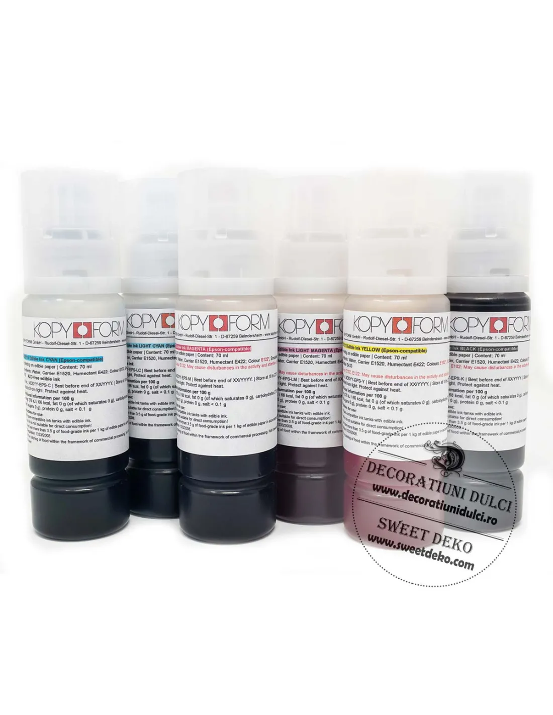 Setul contine 6 recipiente cu cerneala (Bk,Y,M,C,LM,LC) comestibila pentru refill, recomandata pentru toate modelele de imprimante EPSON.