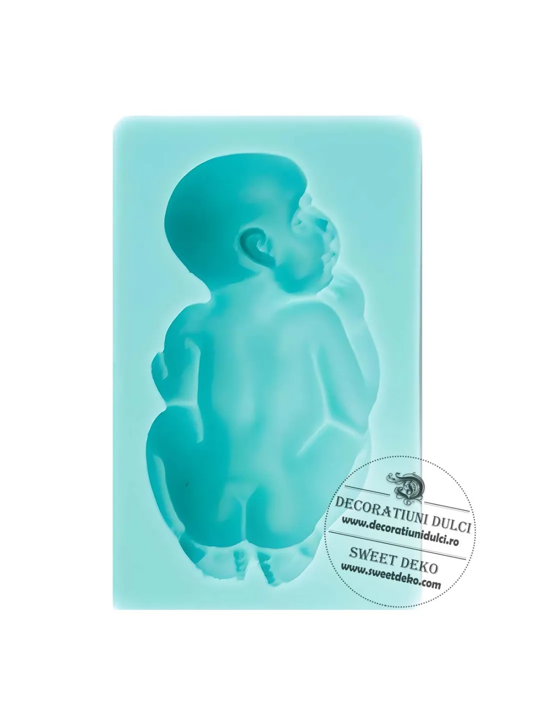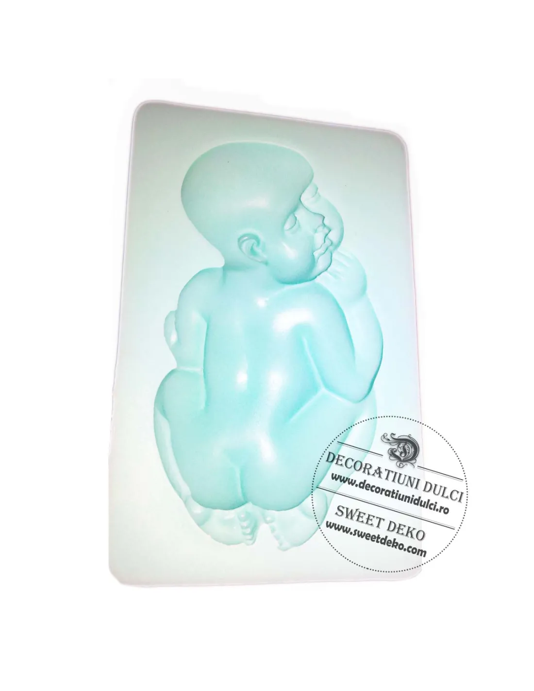 Mulaj din silicon in forma unui bebelus care doarme pe burta cu o dimensiunea de cca. 9cm lungime.