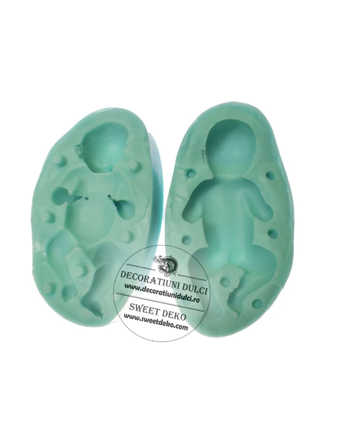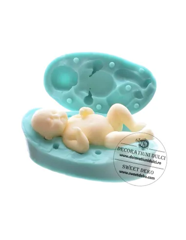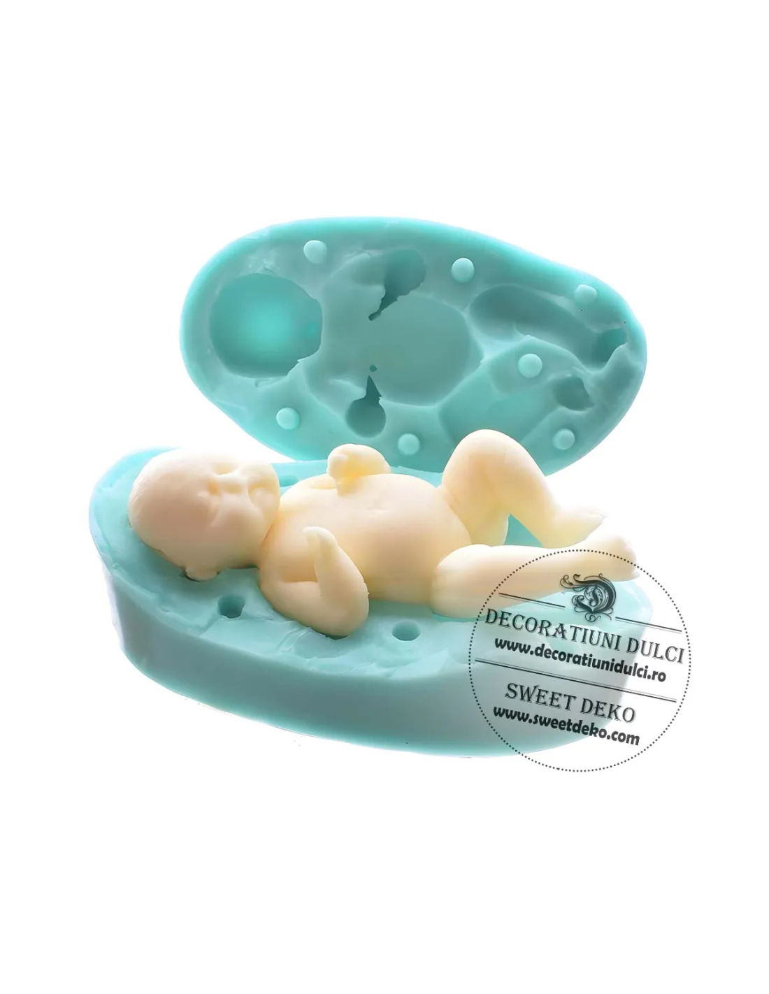 Mulaj din silicon, model bebelus dormind. Mulajul este format din doua parti pentru a se putea extrage cu usurinta modelul.