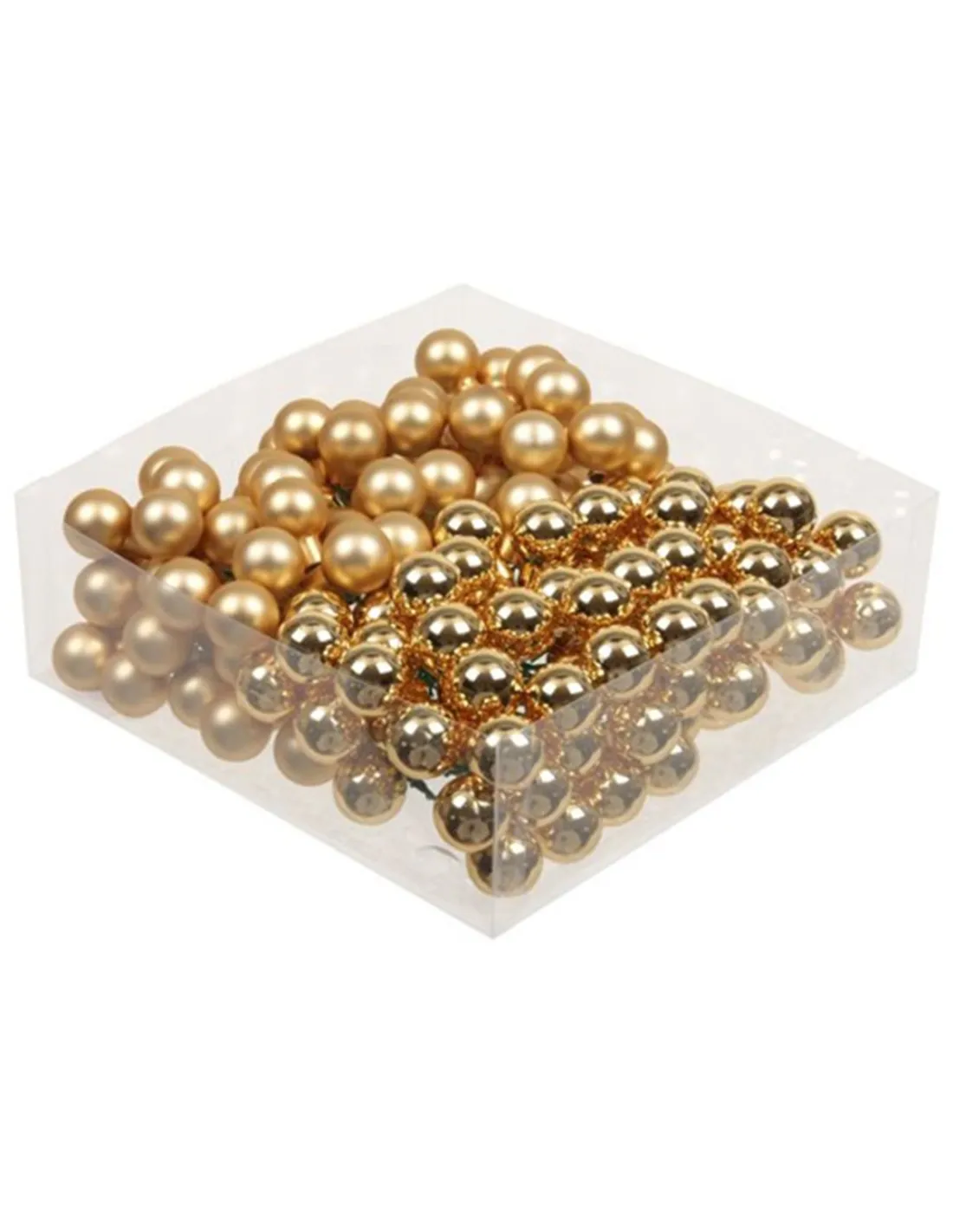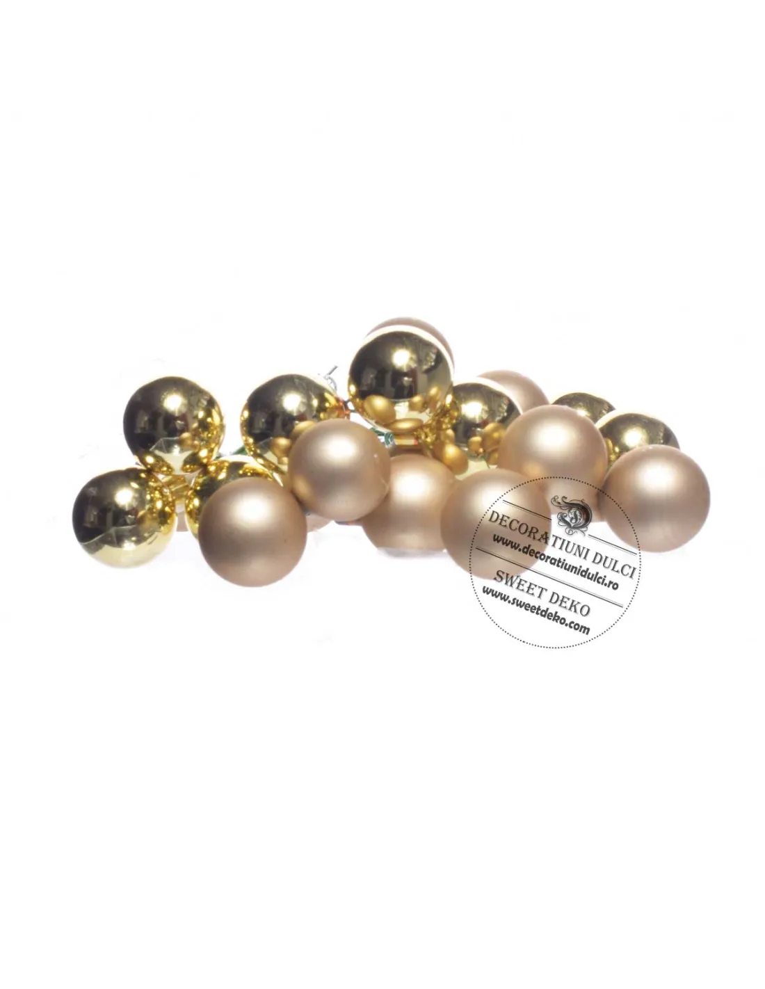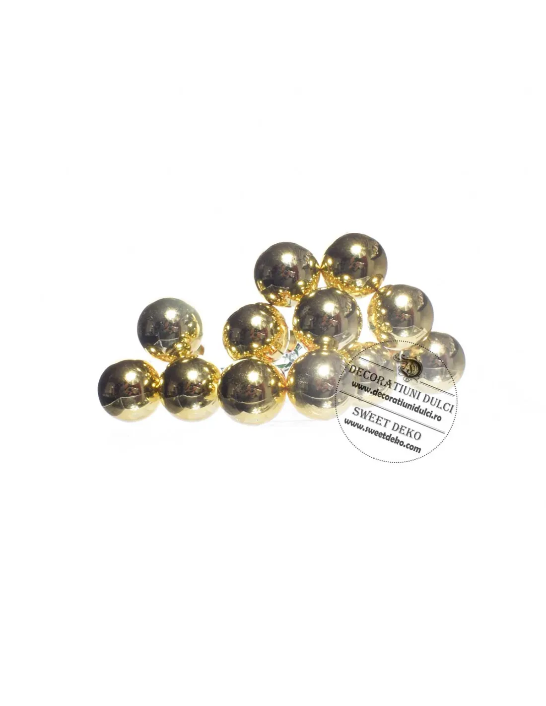 Set 12 globuri din sticla auriu lucios fixate pe sarmulita pentru diferite decoratiuni.