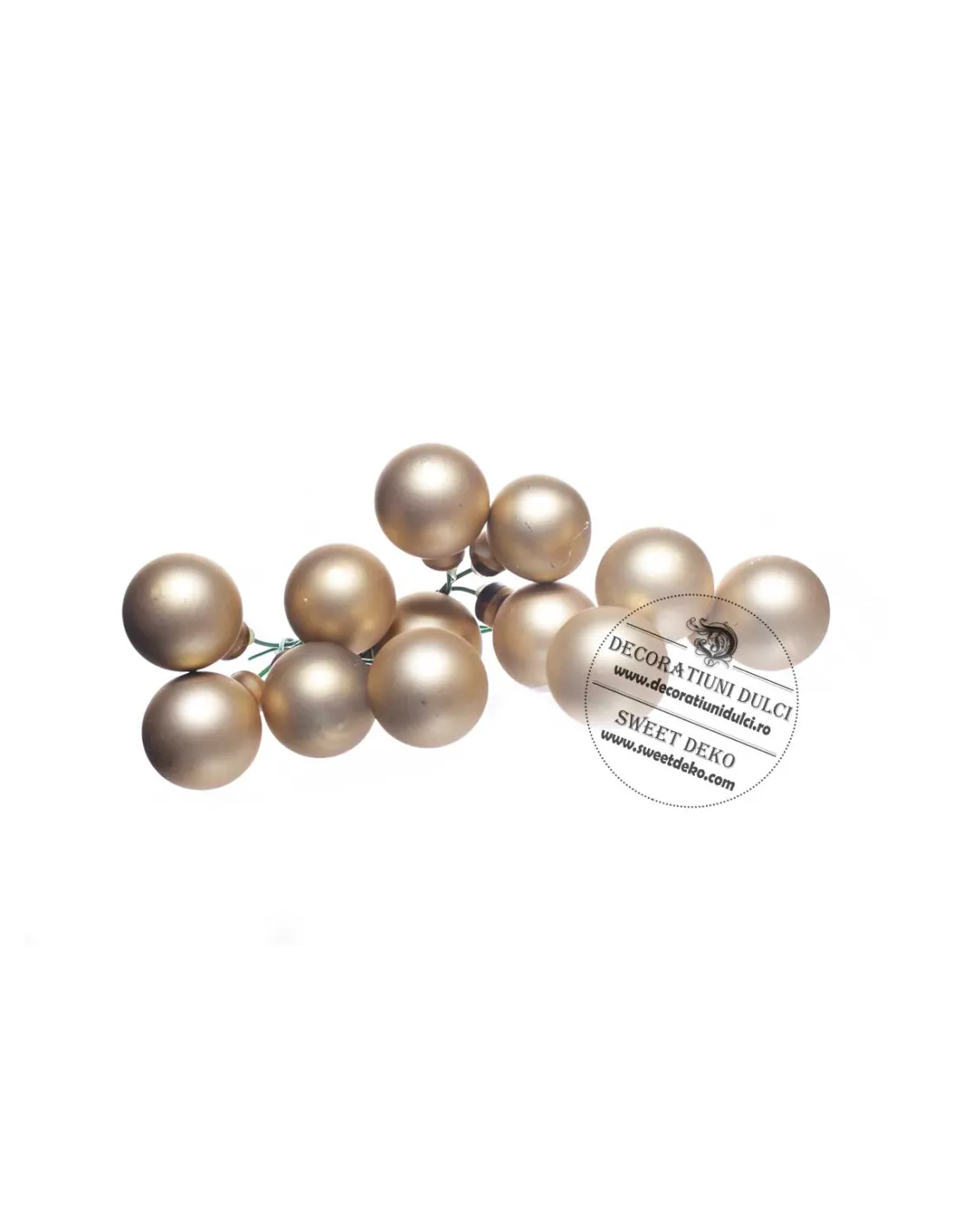 Set 12 globuri din sticla auriu inchis, mat fixate pe sarmulita pentru diferite decoratiuni.