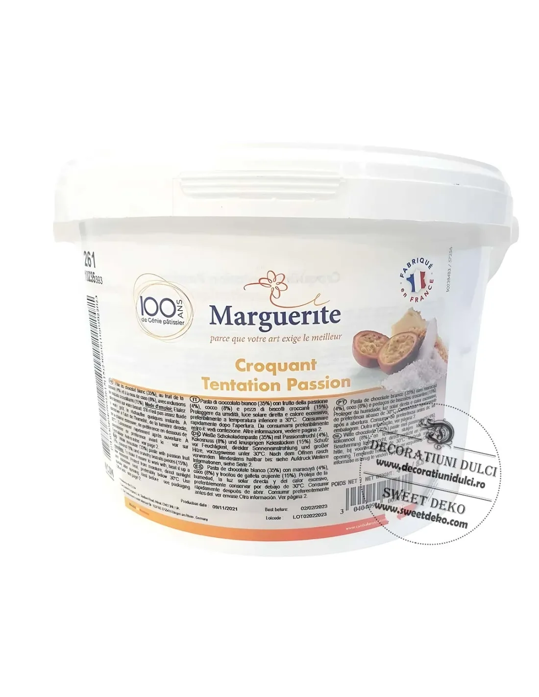 Croquant Tentation Passion de la Marguerite este un ingredient de top creat special pentru cofetariile care doresc sa adauge o textura crocanta constanta si un gust exotic preparatelor.