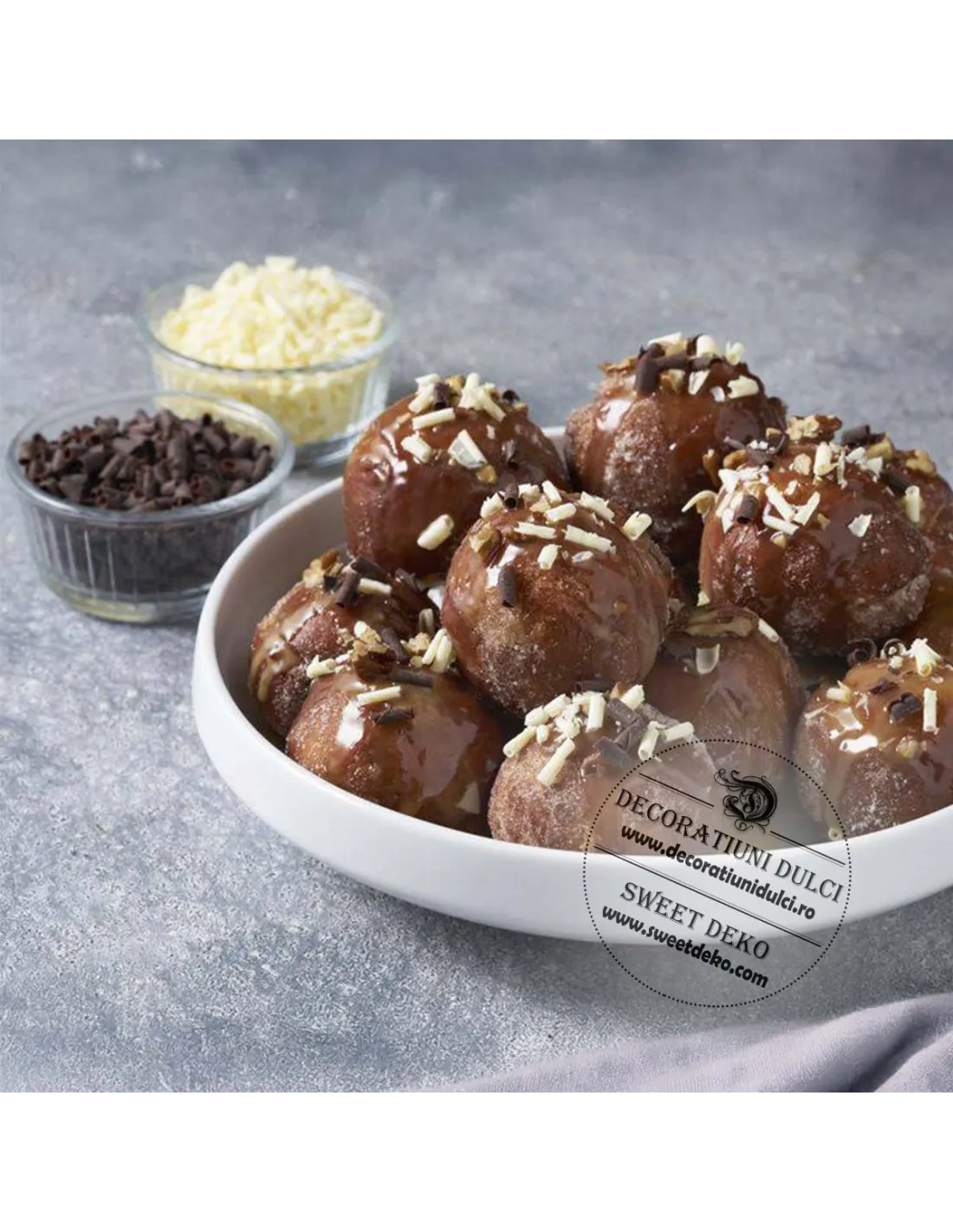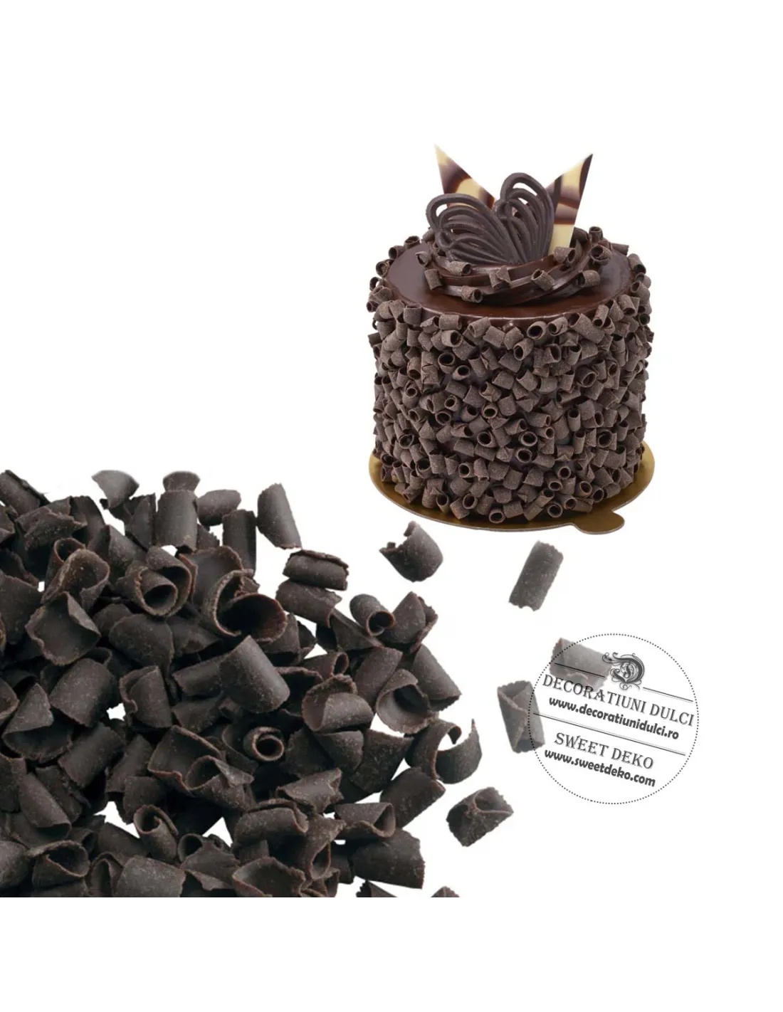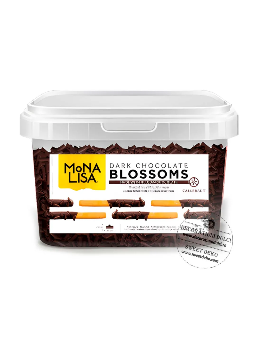 Blossom, bucle din ciocolata neagra, Callebaut arata ca mici petale de flori rulate, care datorita formei delicate se topesc usor in gura, oferind o senzatie placuta. Doar presoara-le pe bauturile din ciocolata, deserturi si vor fi imbogatite cu un gust puternic de ciocolata.