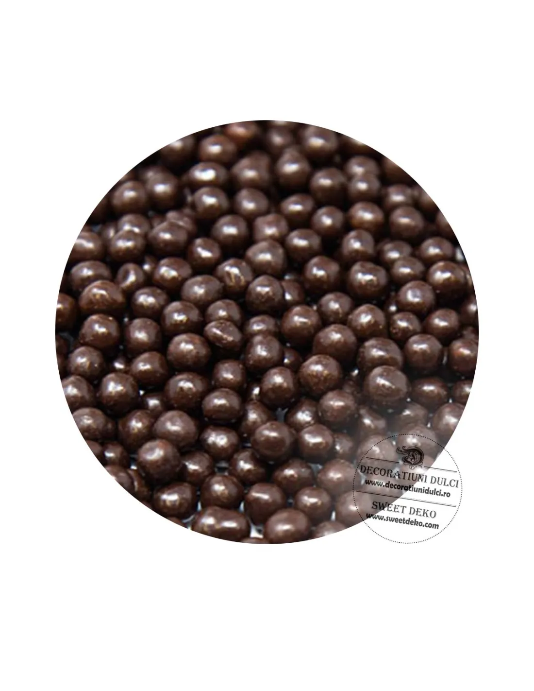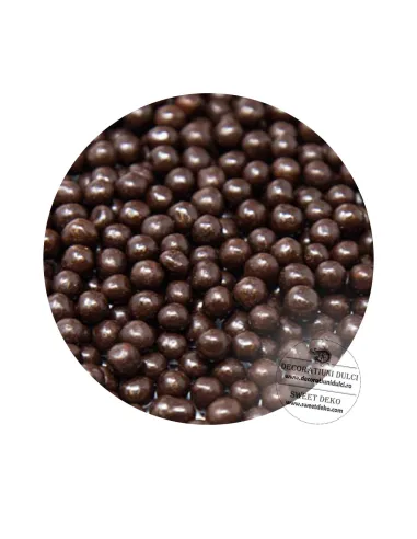 Crunchy beads dark Irca, bombonele crocante 2kg, din orez expandat și grau acoperite cu ciocolata veritabila. Au un diametrul de 2-3 mm