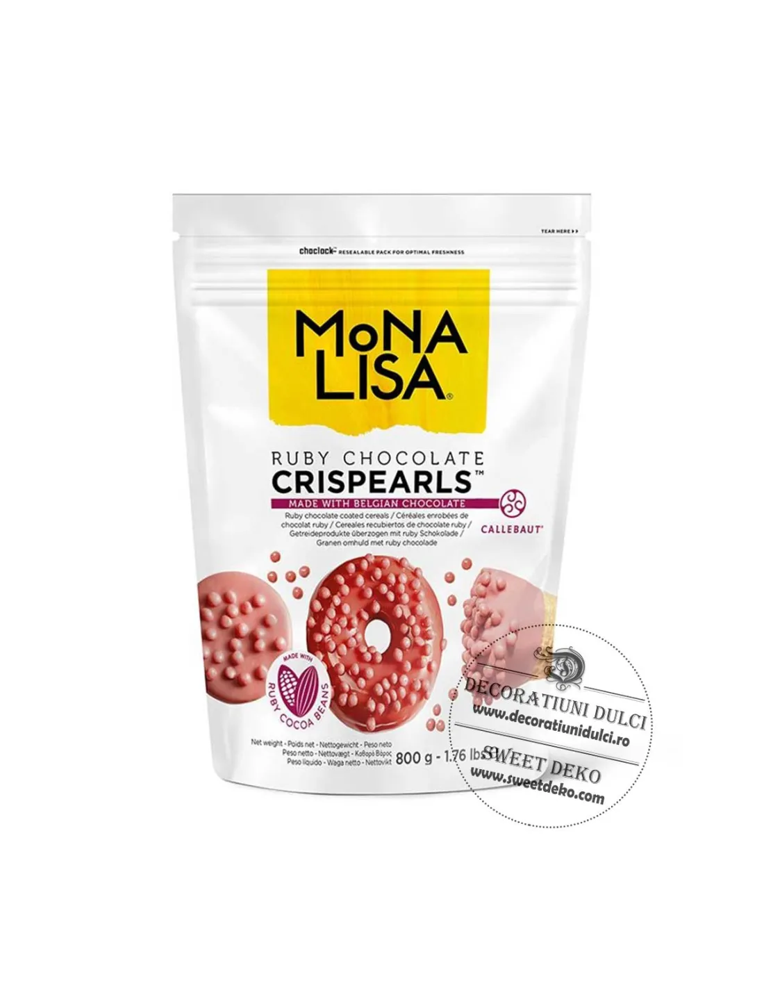 Cele mai fructate perle din ciocolata, Ruby Crispearls combina ciocolata fructata cu o inima crocanta de biscuiti. Excelent pentru a adauga o nota interesanta deserturilor sau produselor de patiserie. Ruby este acea ciocolata obtinuta pe cala naturala, fara arome si coloranti. Cu un gust care balanseaza intre dulce si tente usor acrute, il vei recunoaste imediat. Se pot utiliza de la combinatii in creme pana la deserturi calde.