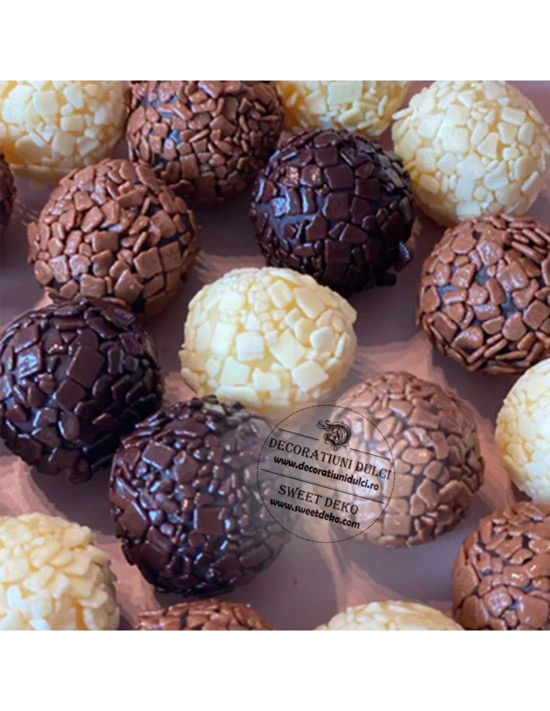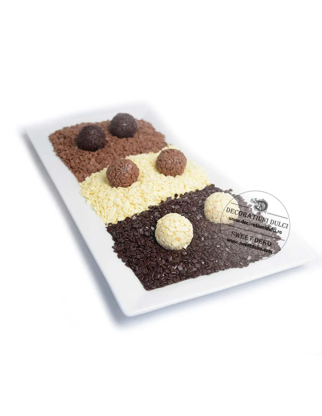 Bucatele de ciocolata de mici dimensiuni si diferite forme, cu un aspect lucios, folosite pentru decorarea deserturilor.