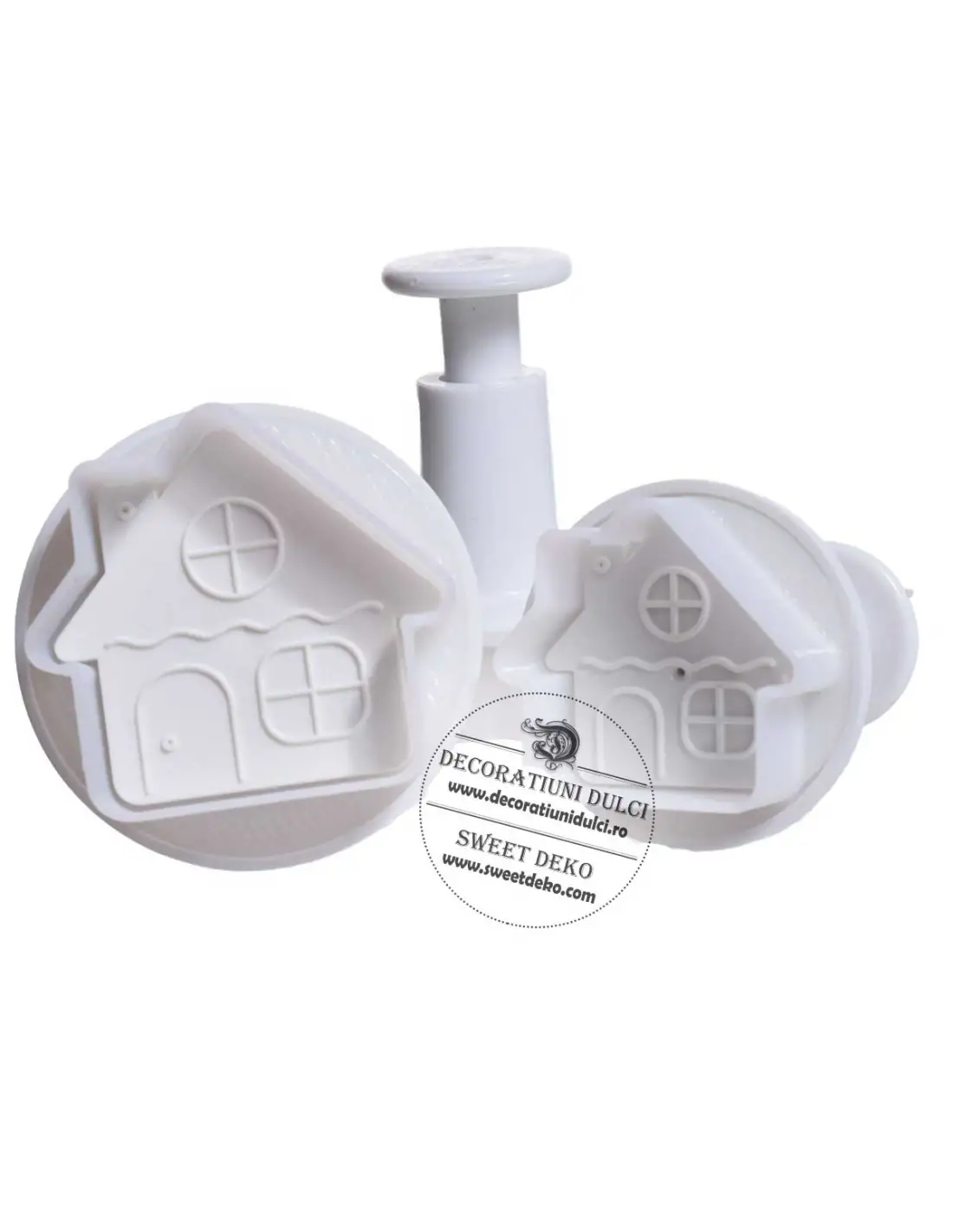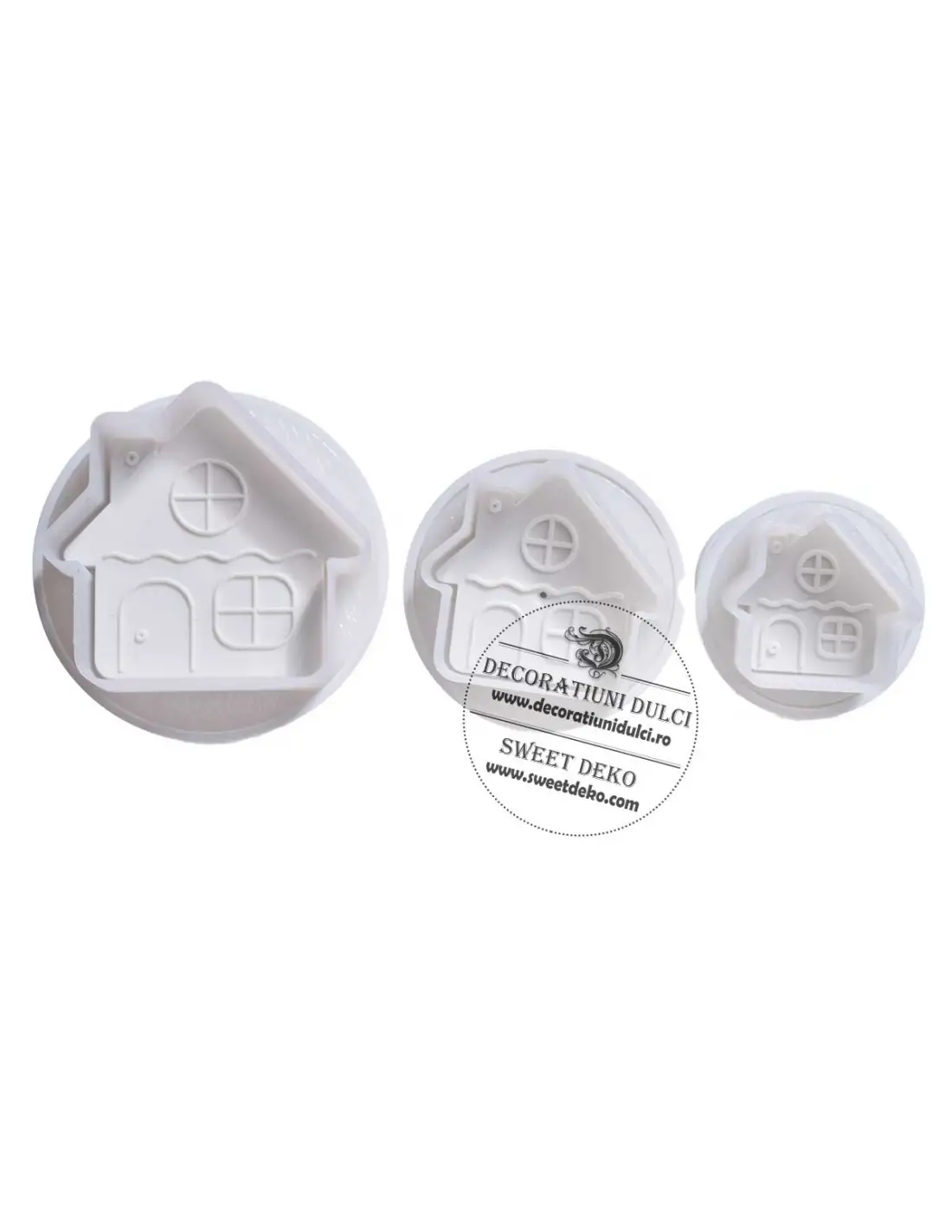 Un set de 3 decupatoare in forma de casuta. Ustensile potrivite pentru pasta de zahar sau orice alt material modelabil.