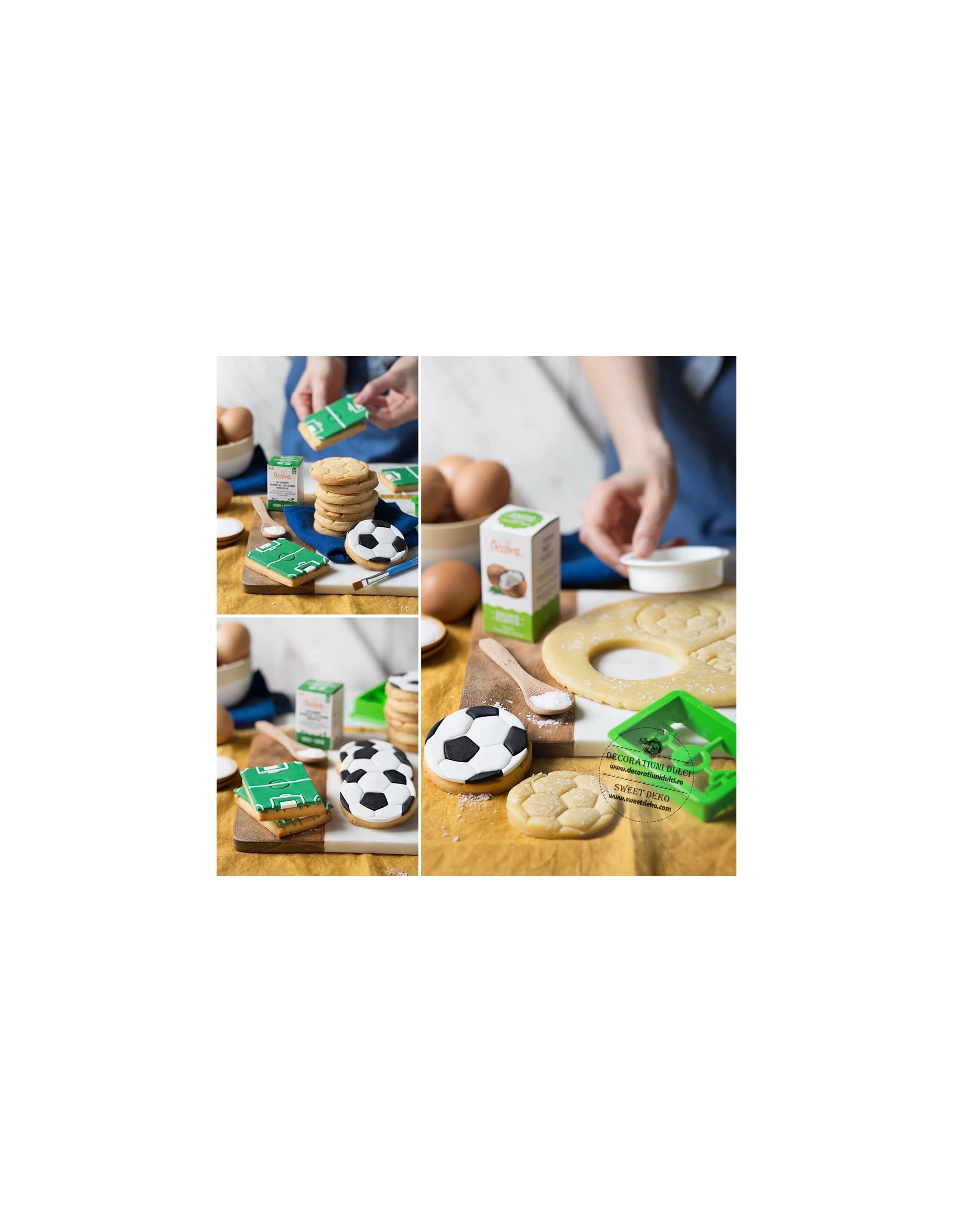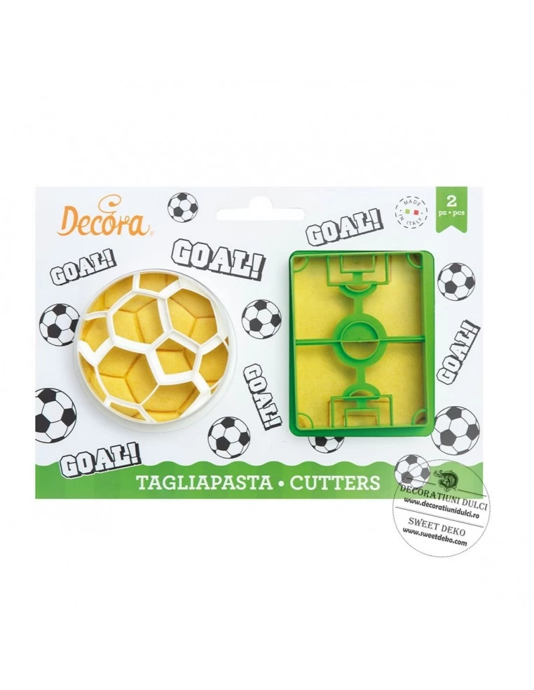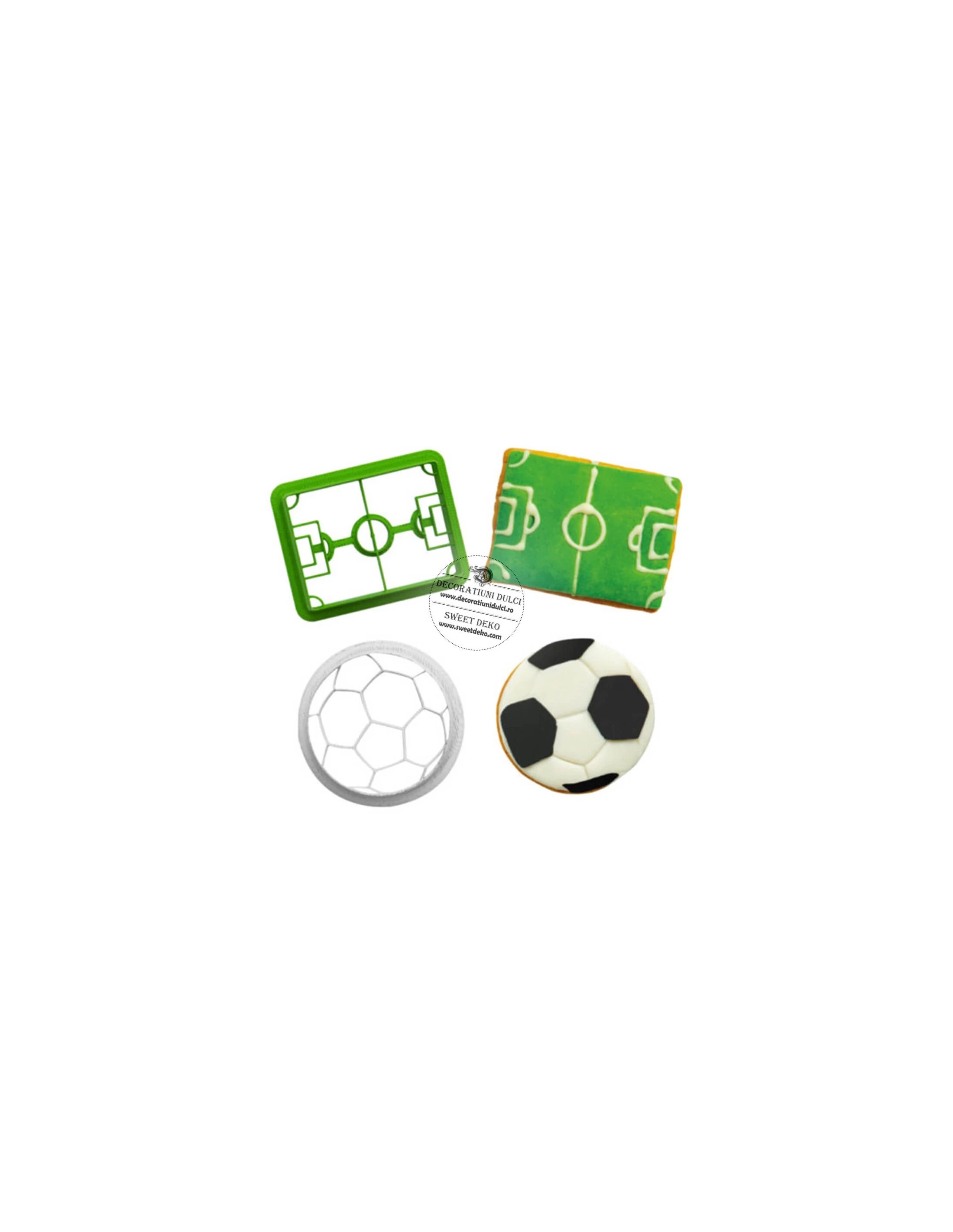 Decupatoare fotbal, teren si minge un set potrivit pentru realizarea biscuitilor ce urmeaza a fi spre deliciul micilor microbisti.