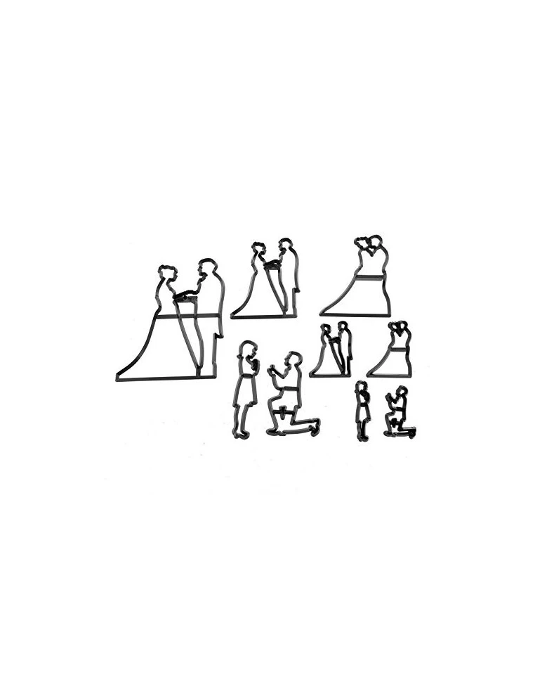 Decupatoare din plastic usor de utilizat pentru a obtine siluete/umbre pentru decorarea torturilor de nunta sau aniversarea cuplului (casatorie, logodna, prima intalnire etc). Dimensiunea de 5cm este perfecta pentru decorarea brioselor.