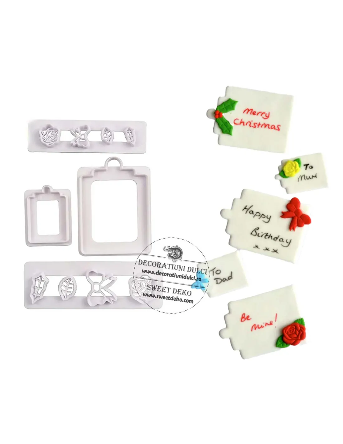 Setul contine 4 decupatoare, 2 decupatoare pentru etichete si doua decupatoare pentru accesorii decor.