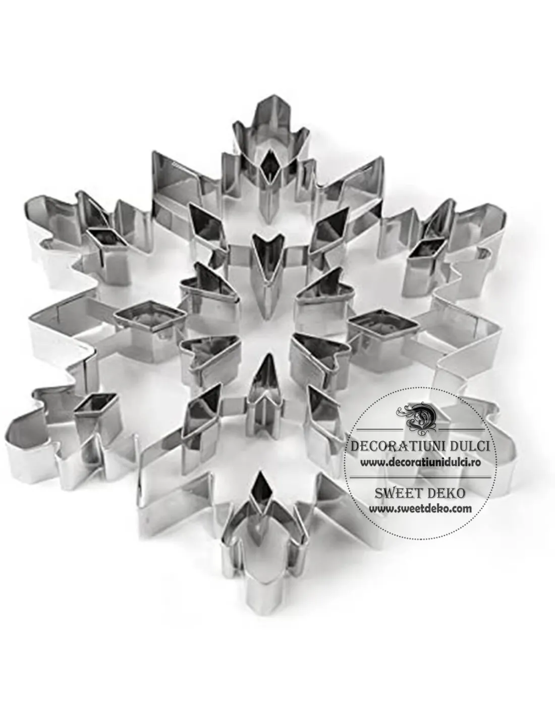 Decupator metalic sub forma de fulg, ce poate fi folosit pentru realizarea biscuitilor din turta dulce, sau a decorurilor din pasta de zahar, martipan, ciocolata plastica etc., ideal pentru realizarea decorurilor tematice si creative.