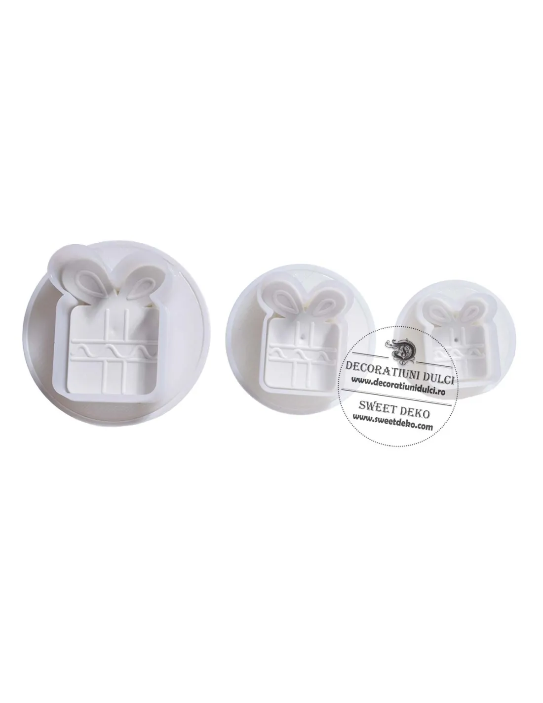 Set 3 decupatoare cu piston si arc, in forma de cadouri.