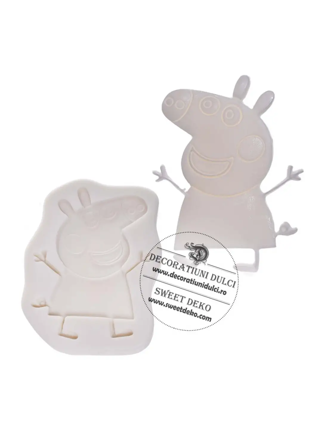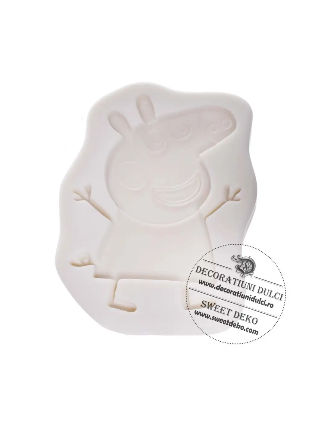 Mulaj din silicon Peppa Pig o matrita simpatica cu personajul din desene animat, usor de utilizat pentru crearea unor decoruri inedite. Pentru acest mulaj aveti nevoie de putin atentie la extragerea mainilor si piciorelor, care sunt specifice purcelusei, sunt foarte subtiri.
