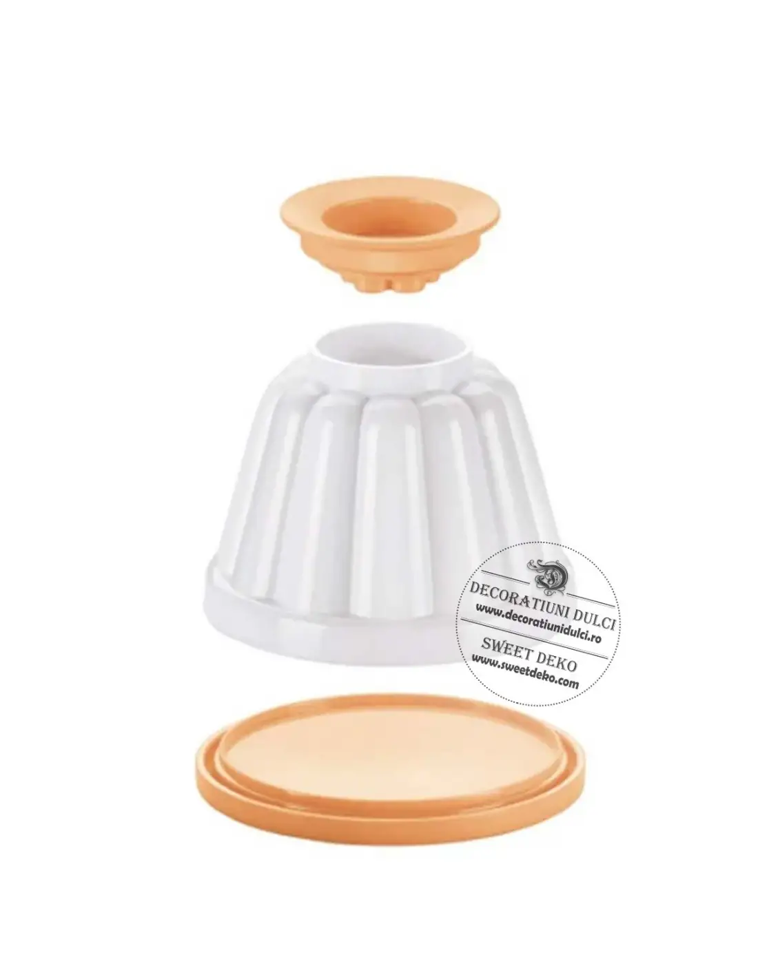 Capacelul din partea superioara are o forma speciala care se va imprima pe desert.
