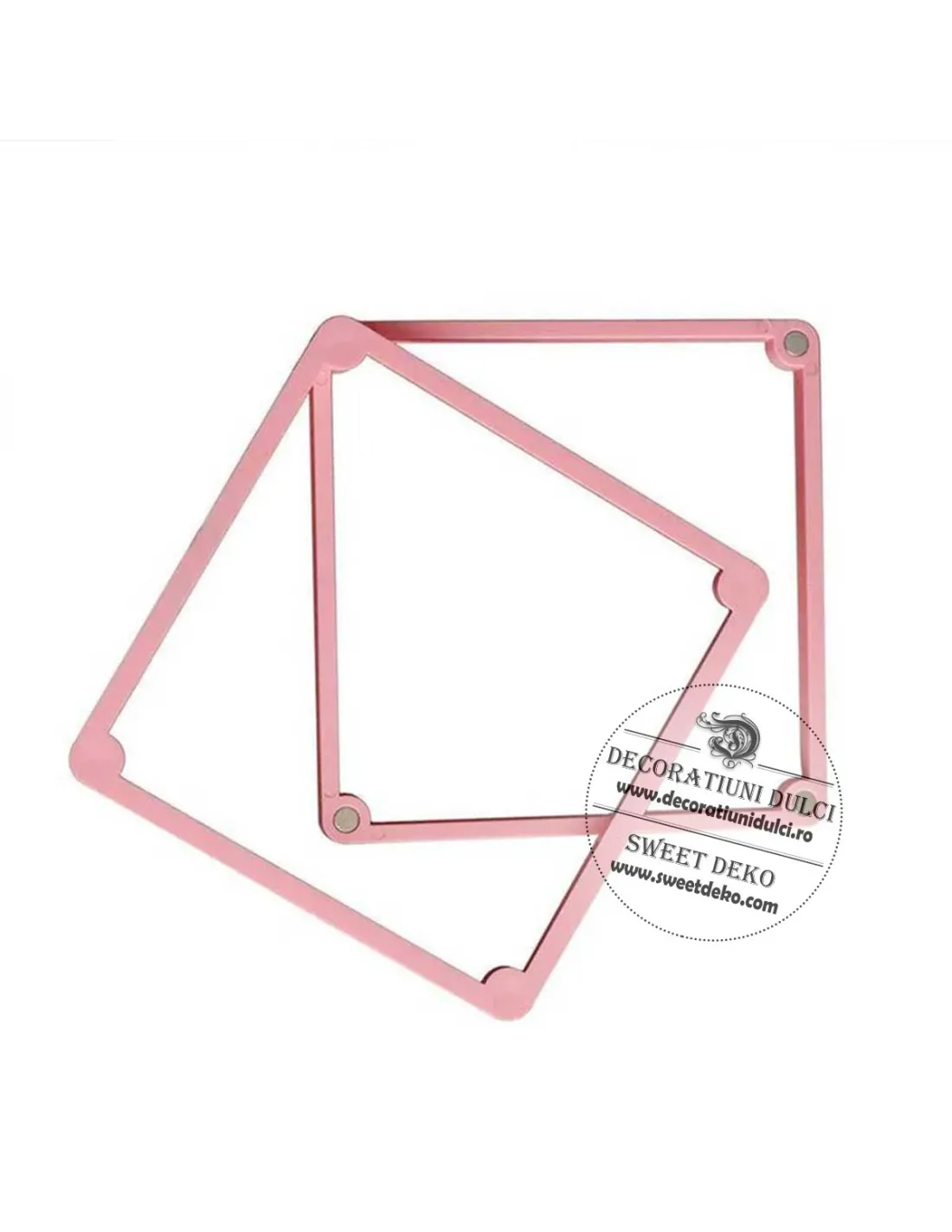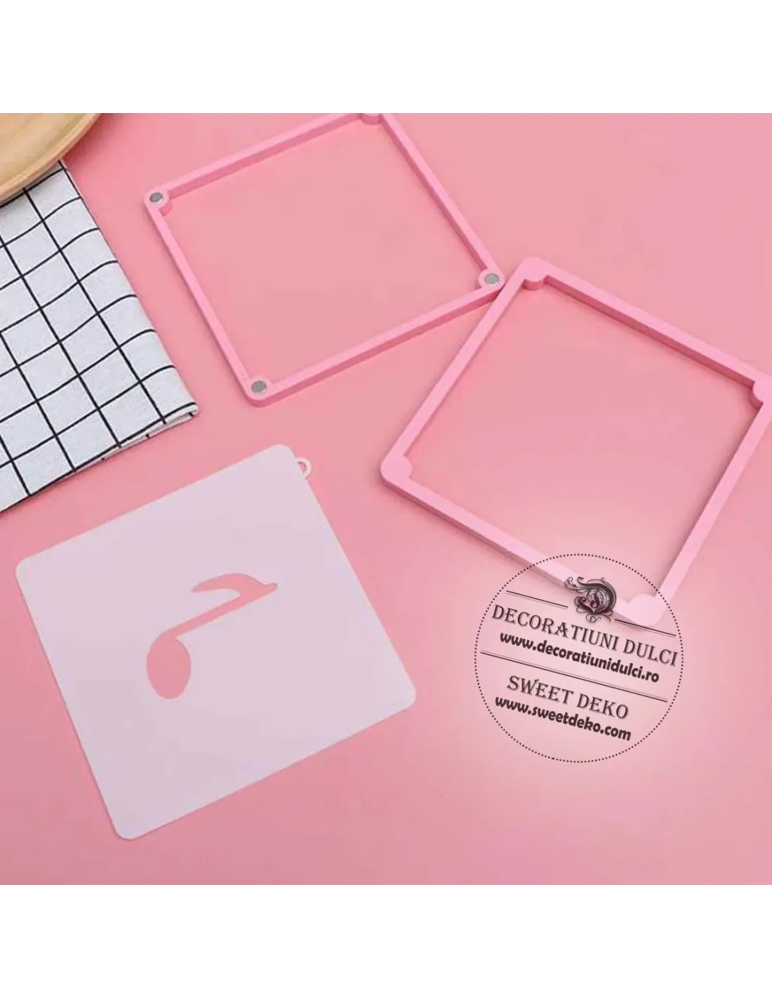 Rama magnetica pentru sabloane (stencils) – un accesoriu practic ce va ajuta sa aplicati cu usurinta royal icing pe biscuiti. Rama dispune de o margine speciala care fixeaza in partea de jos biscuitii, turta dulce sau macarons, mentinand sablonul perfect intins pentru o aplicare uniforma a pastei.