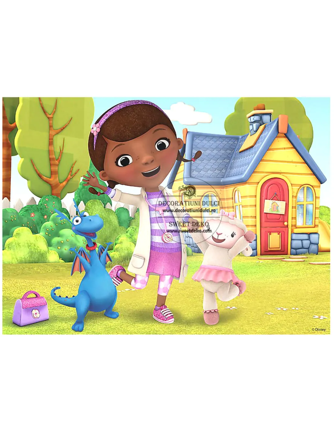 Imagine pentru tort cu Doctorita Plusica, iar tortul tau va fi imediat decorat cu personajele mult indragite de cei mici. Fii creativ si original cu decoruri simple dar de invidiat. Coala poate fi asezata pe orice material de acoperit: fondant, martipan, frisca vegetala, crema de unt, creme tip oglinda (NU frisca naturala). Pentru torturile mai mici alege varianta A5, astfel poza pentru tort se va incadra perfect.