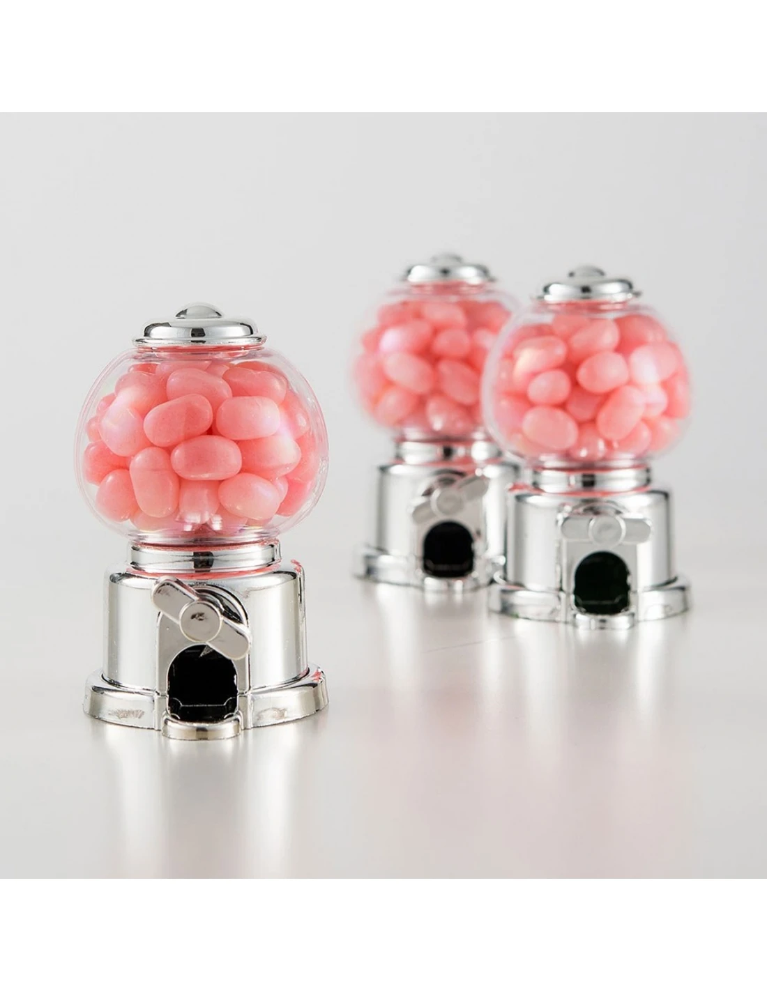 Acrilic candy machine gold, un dispenser in miniatura, asemanatoare celor din copilarie, cu buton care se invarte si capac pt introducerea bombonelelor sau a floricelelor, cu dimensiunea de 10*6 cm. Dispenserul are uu capac ce se capsuleaza, cuprinzand in interiorul ei mici fotografii, articole decorative cum ar fi: flori, confetti sau mesaje.