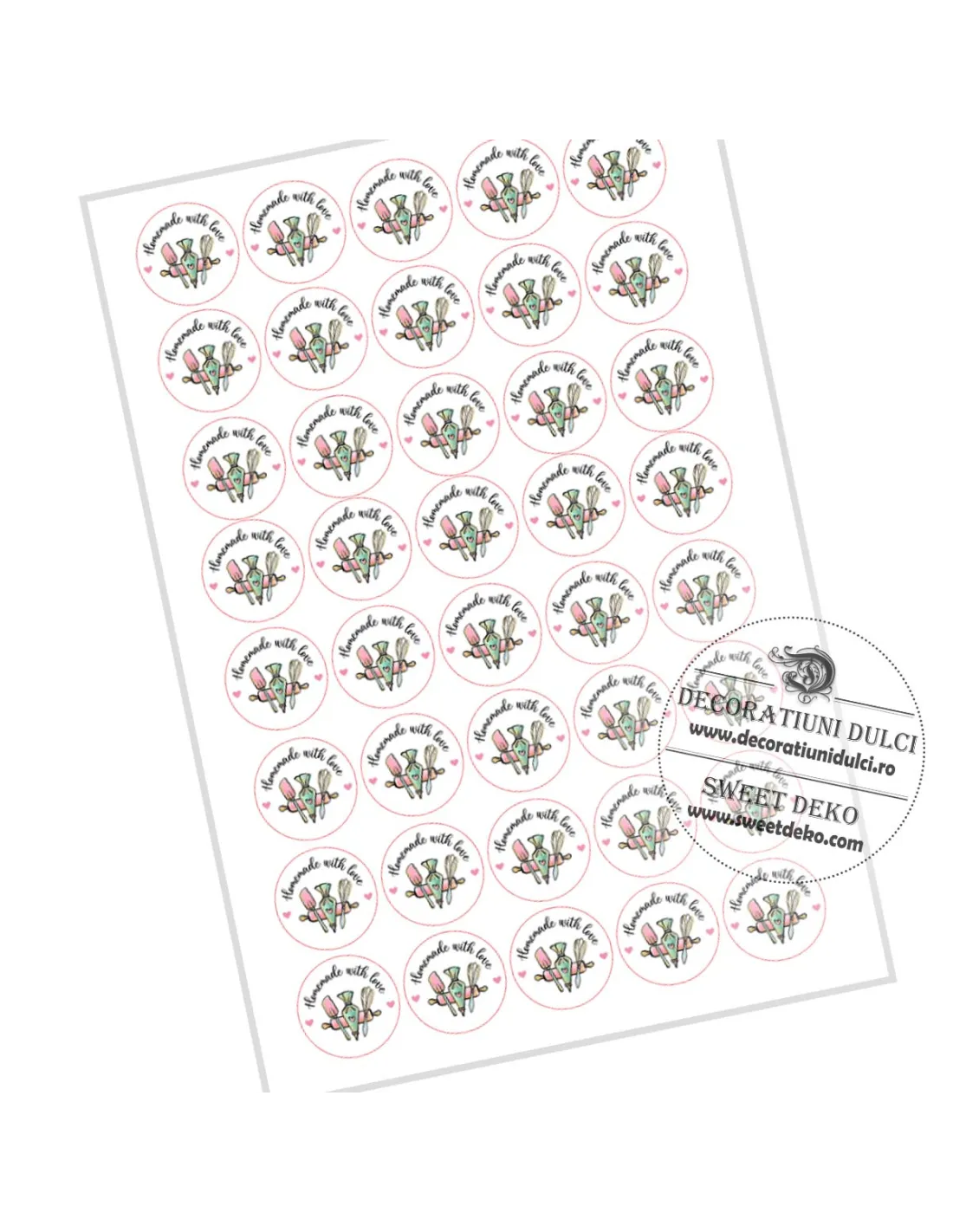 Bulinute autoadezive cu mesajul " Homemade with love", pentru o sigilare usoara a ambalajelor.