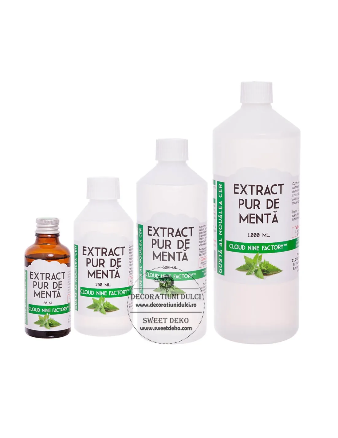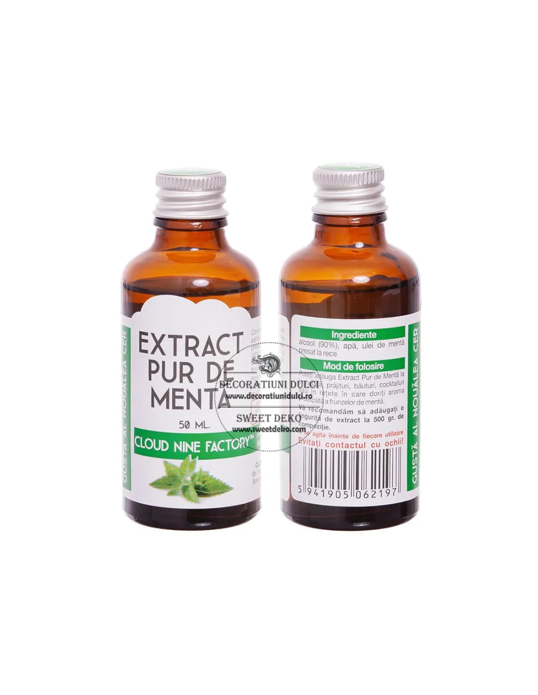 Condiment alimentar de calitate superioară, 100% natural, folosit pentru aromatizarea deserturilor, a prăjiturilor sau a băuturilor. Este obținut din ulei de mentă presat la rece (Mentha Piperita). Datorită conținutului de mentol provenit din frunzele de mentă, aroma extractului este foarte intensă și proaspătă.