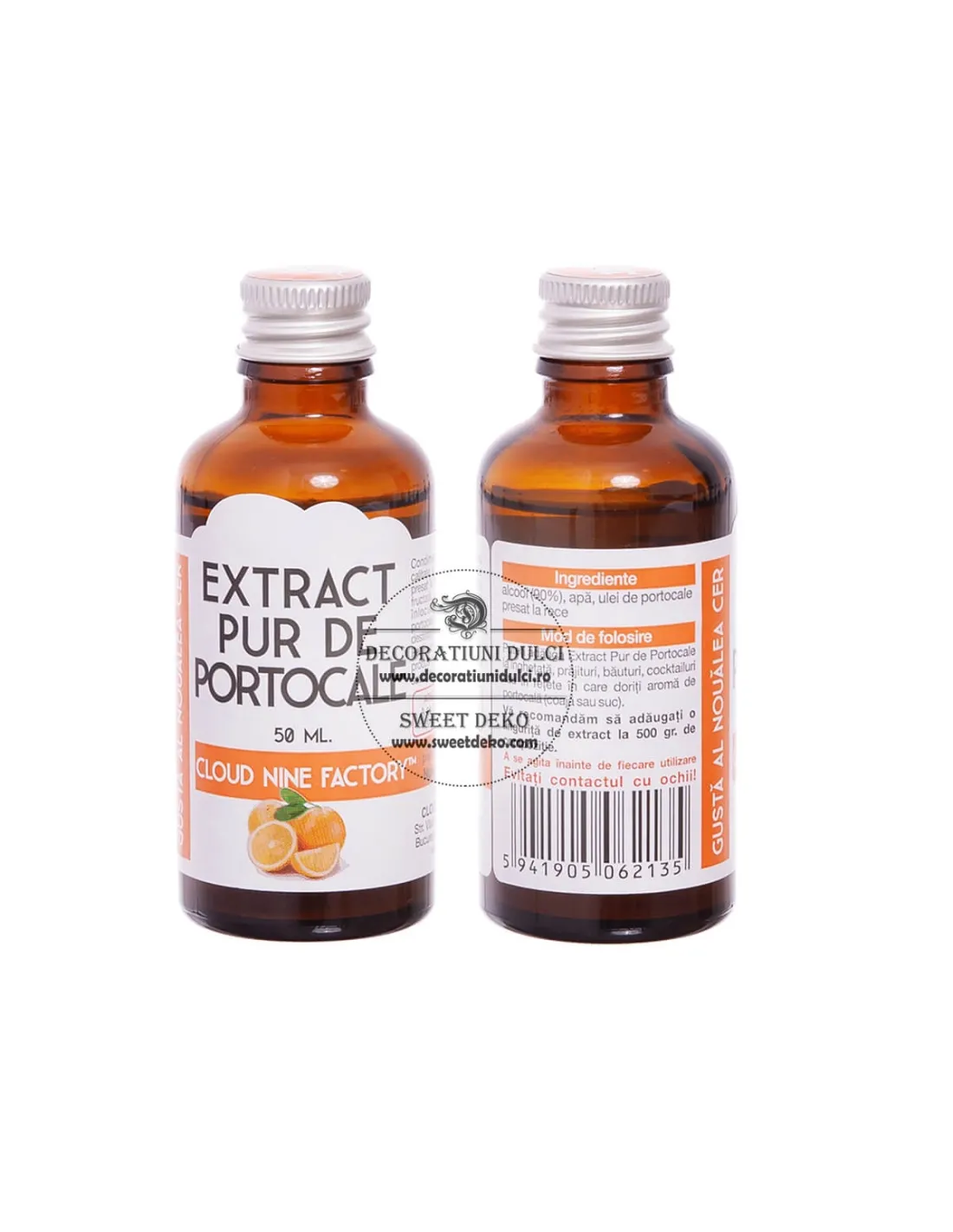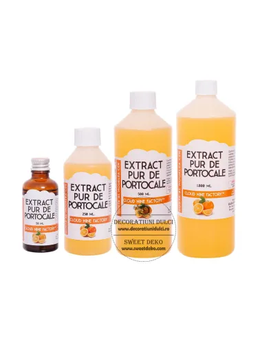 Mod de folosire: Poate fi folosit în rețete unde se adaugă suc, coajă sau lichior de portocale. Extractul Pur de Portocale va permite evitarea cojii portocalelor din comerț ce conține pesticide, substanțe de prezervare și ceară. Recomandarea noastră de folosire este de o linguriță de extract la fiecare 500 gr. de compoziție, dar nu este o problemă să fie folosit mai mult extract dacă se urmărește obținerea unei arome mai puternice.