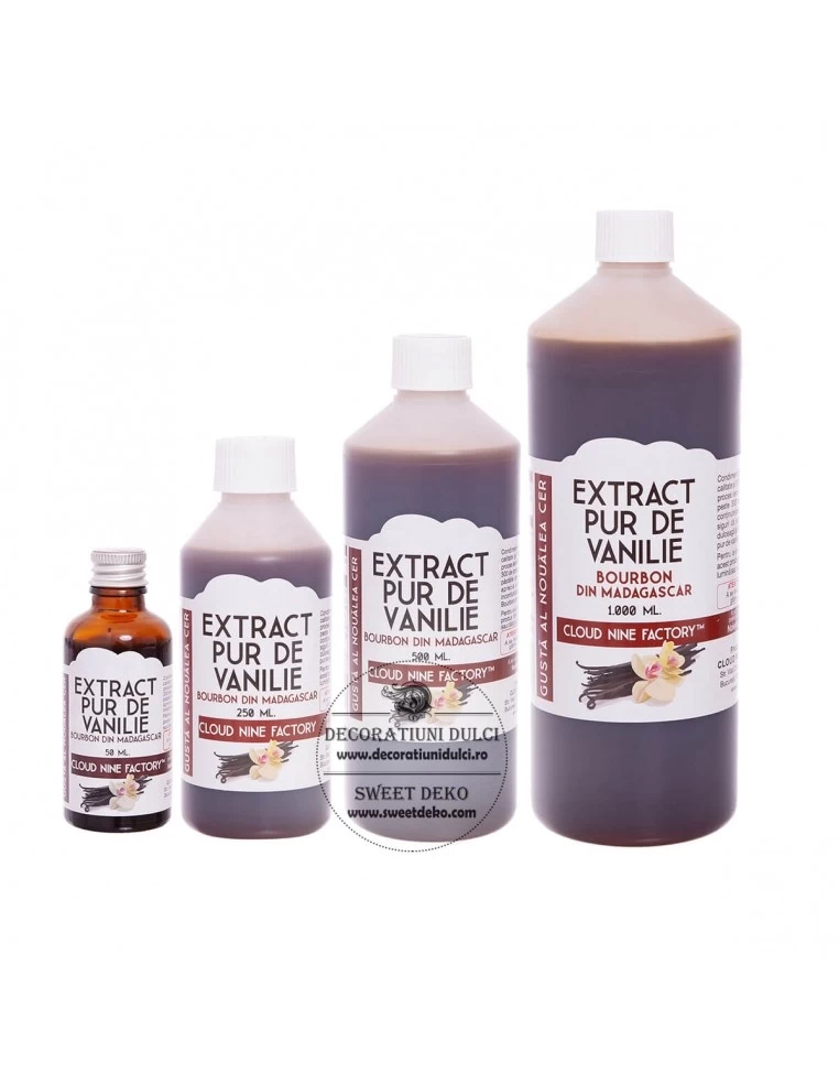 Condiment alimentar de calitate superioară, 100% natural, folosit pentru aromatizarea deserturilor, a prăjiturilor sau a băuturilor. Produs cu mandrie in Romania de catre Cloud Nine Factory pentru deserturi cu arome desprinse din al noulea cer.