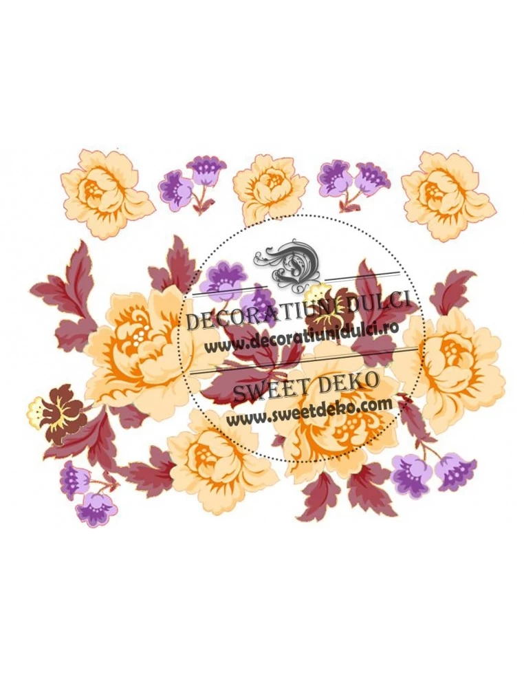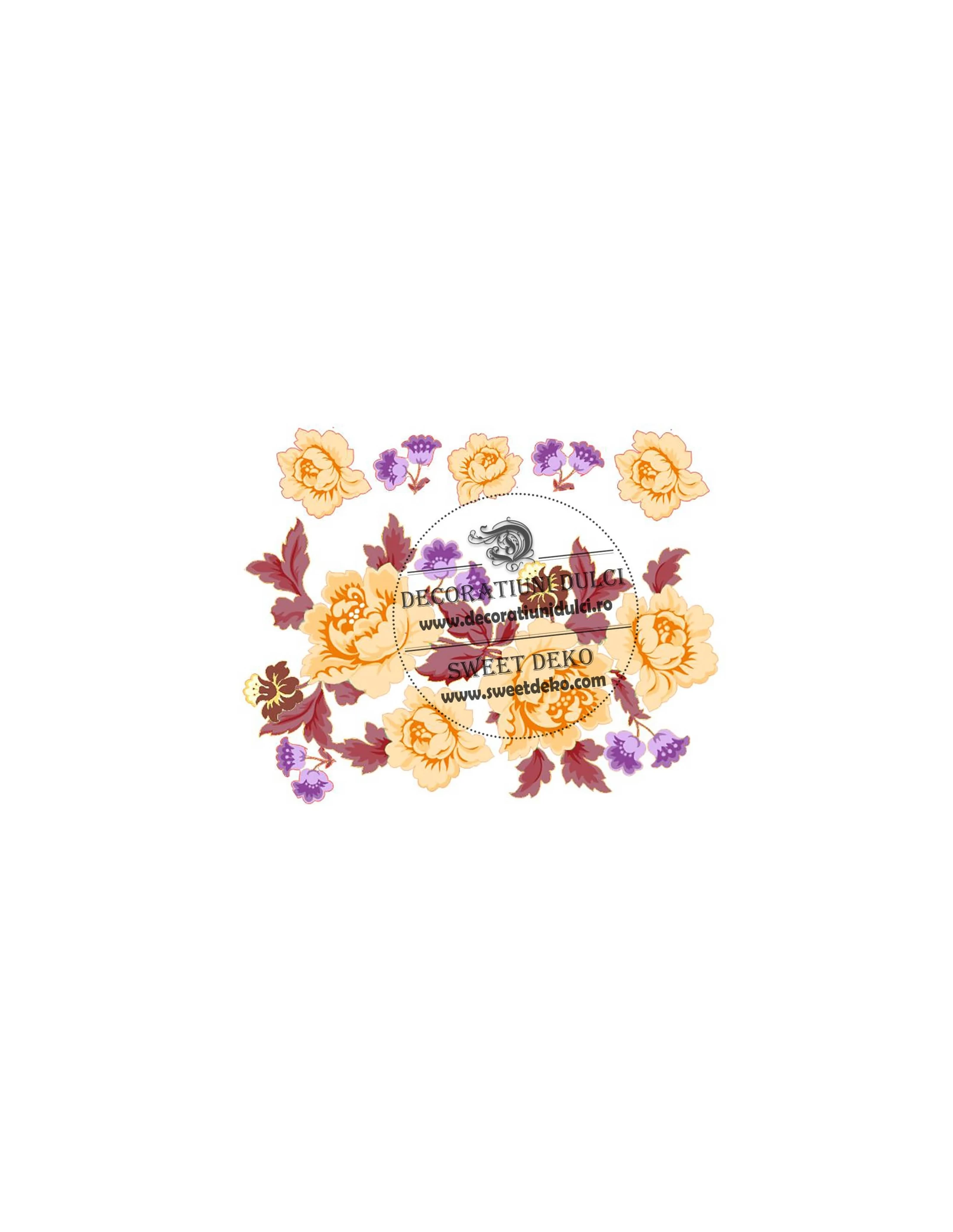 O ghirlanda mare, imprimata pe o coala A4, pentru a decora torturile in nuante tomnatice. Coala de pasta de zahar se poate lipi pe torturile acoperite cu pasta de zahar, martipan, oglinda din ciocolata, unt, frisca vegetala.