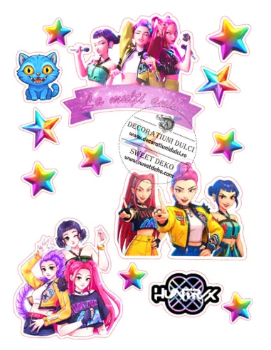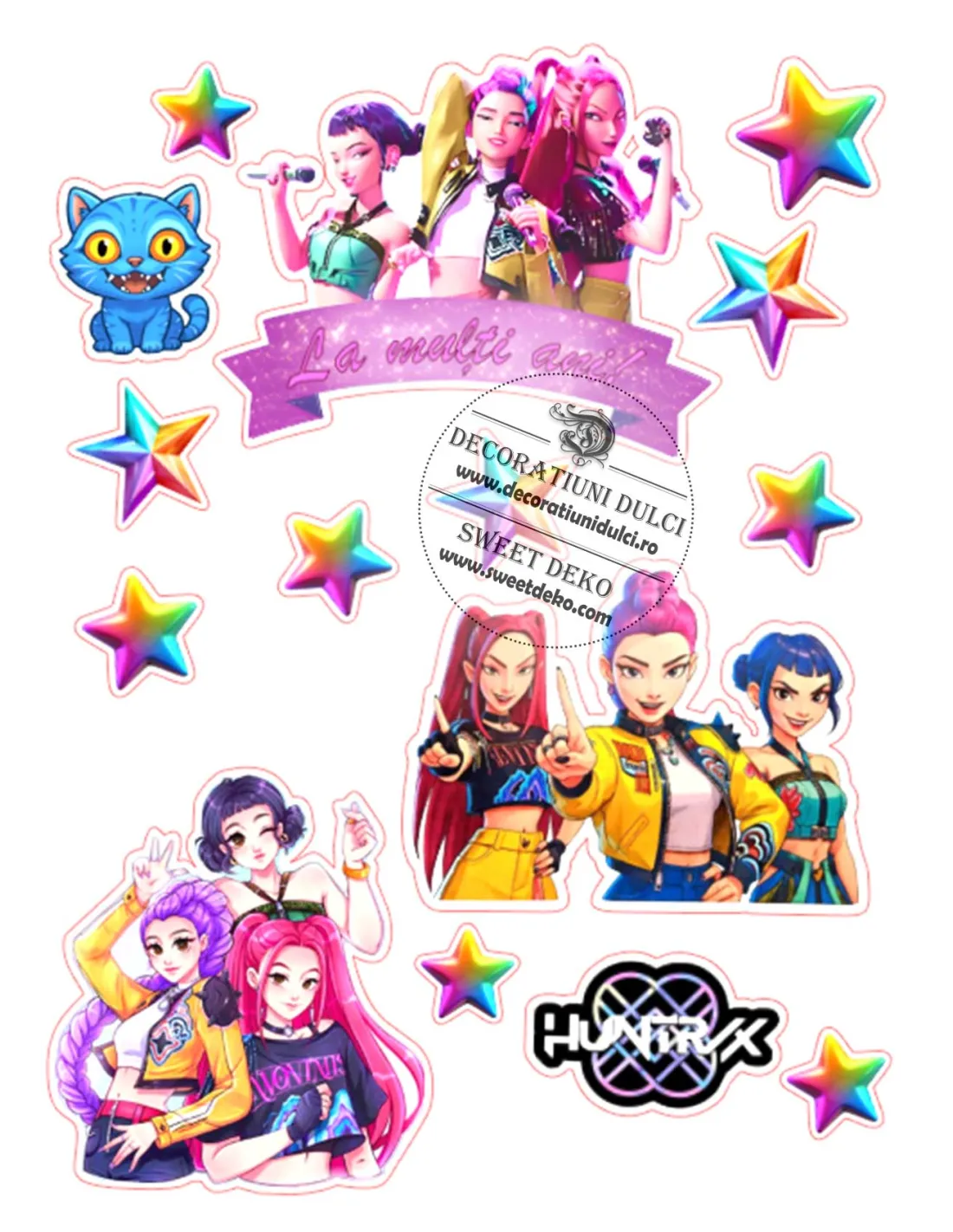 Un colaj de poze cu formatia Huntrix, gata pregatite pentru decorarea deserturilor.
