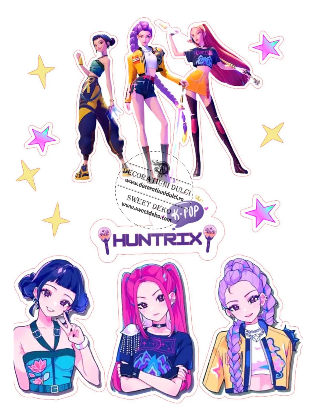Un colaj de poze cu formatia Huntrix, K Pop Hunters, gata pregatite pentru decorarea deserturilor.