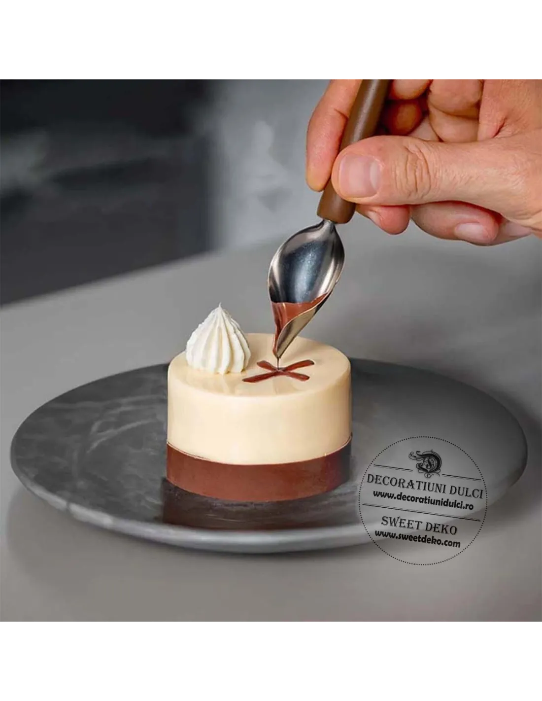Are fluiditate medie (3 picaturi), fiind potrivita atat pentru turnare si glazurare, cat si pentru creme.