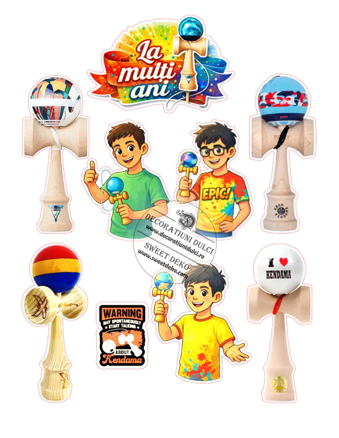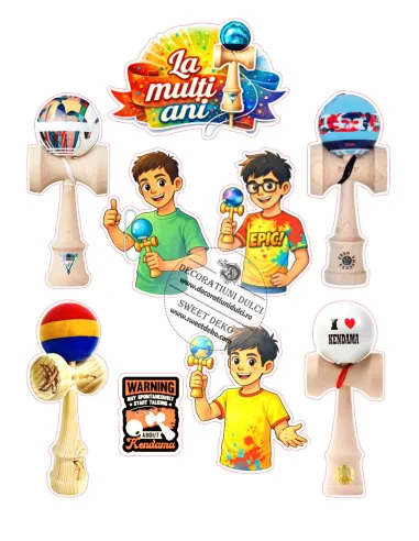 Imagine pentru tort cu design kendama, perfect pentru torturi de copii si adolescenti. Completeaza decorul cu un elemente dinamice.