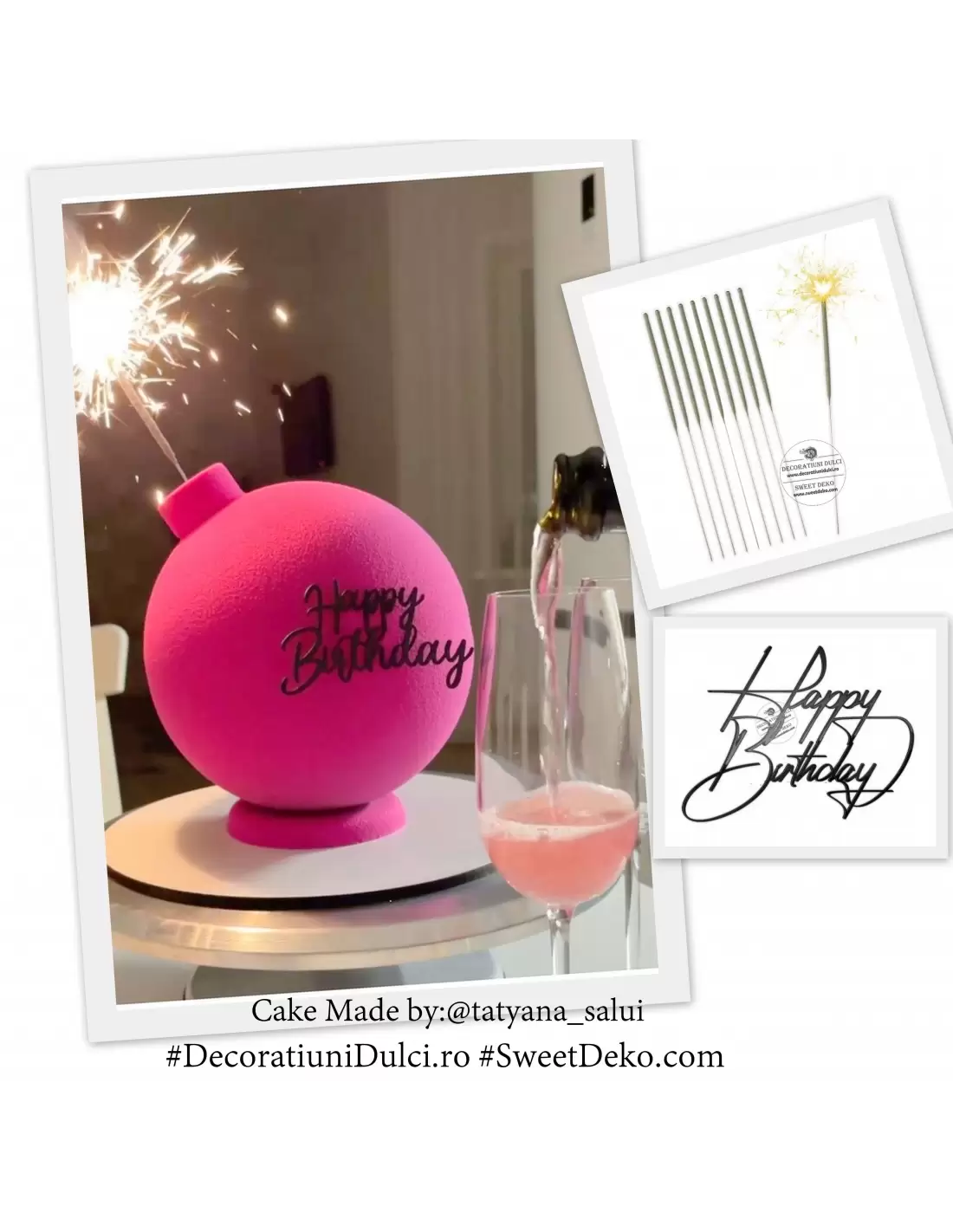 Set 10 betisoare cu scantei pentru acele deserturi si momente altfel. Un tort in forma de bomba care anunta venirea unui bebelus, sau o varsta magica.