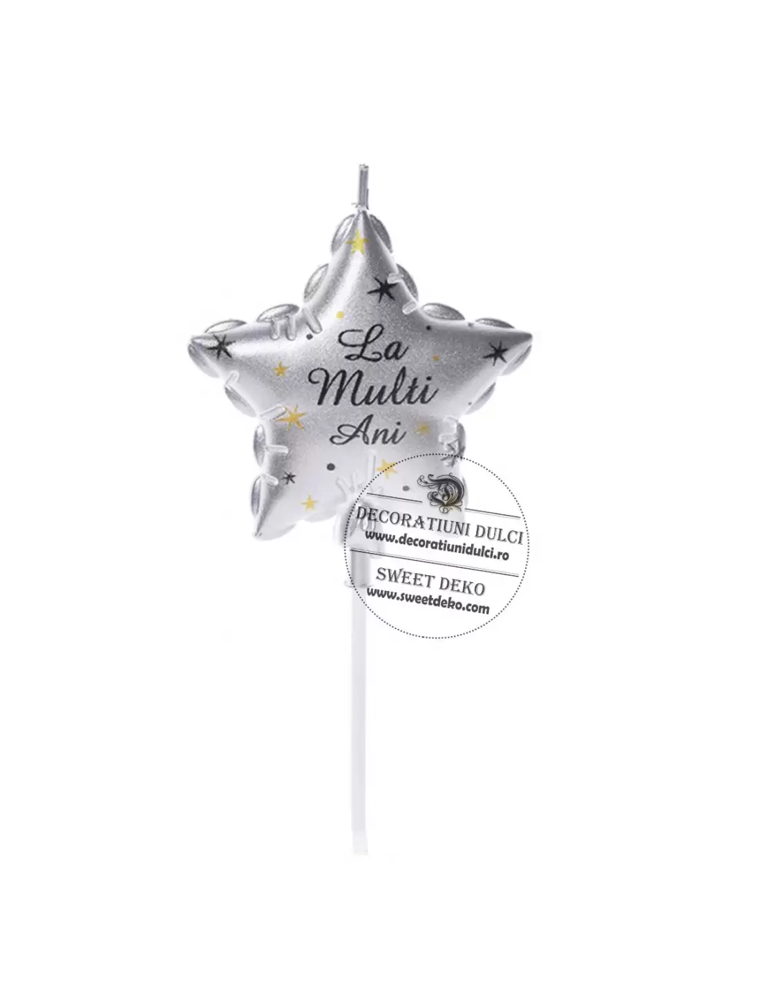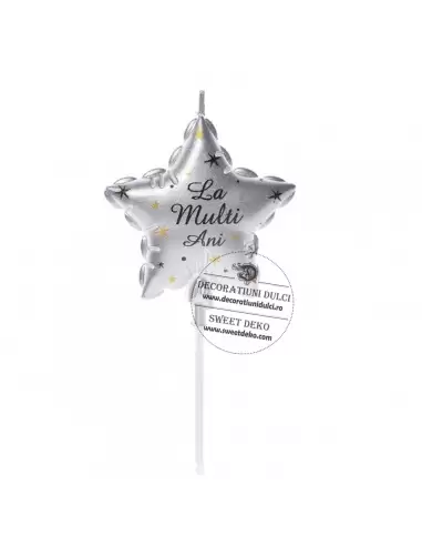 O lumanare speciala in forma de balon ca o stea, perfecta pentru a lumina si a adauga un aspect fermecator tortului dumneavoastra.