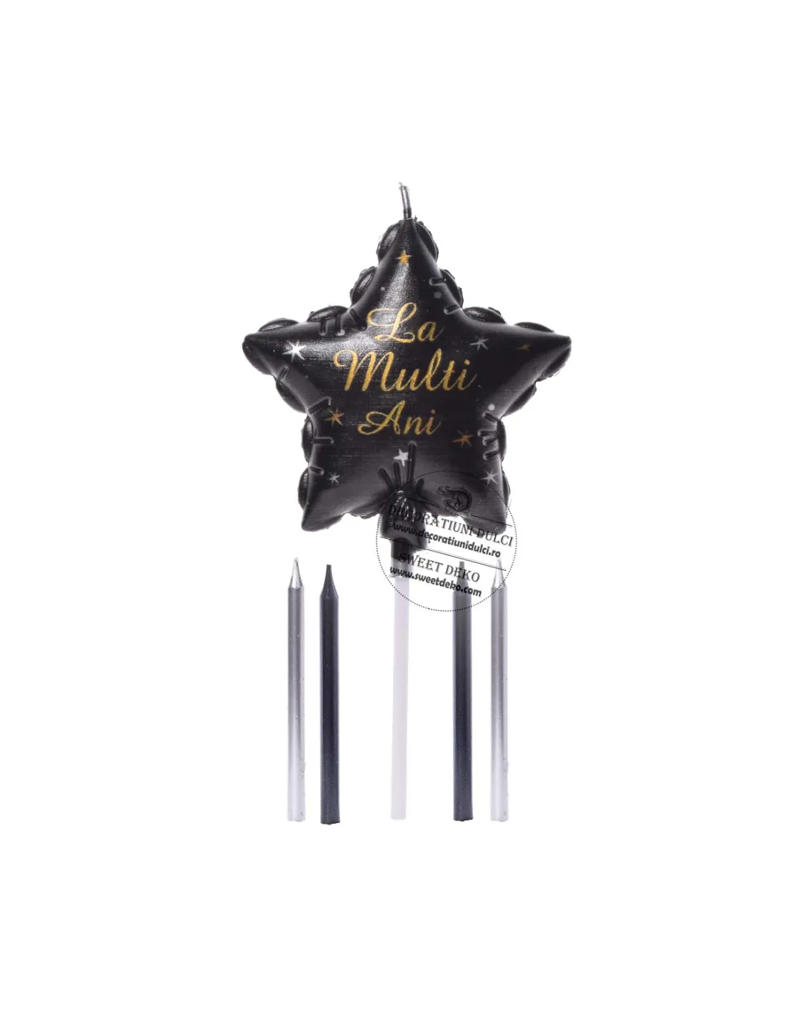 Set 5 lumanari tort | stea negru sidef si 4 lumanari clasice