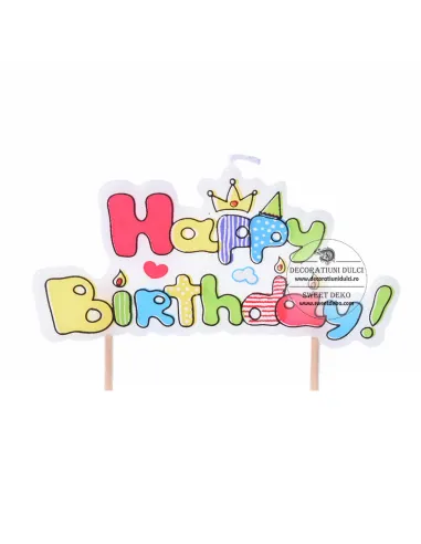 Lumanarea eticheta ,,Happy Birthday!", element decorativ pentru torturile aniversare! O lumanare plina de culori si forme hazlii.