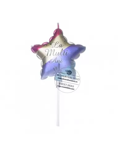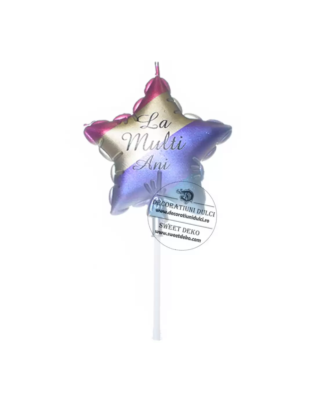 Lumanare stea cu 3 culori si mesajul La multi ani! un decor care imita forma unui balon si care va completa designul deserturilor dvs.