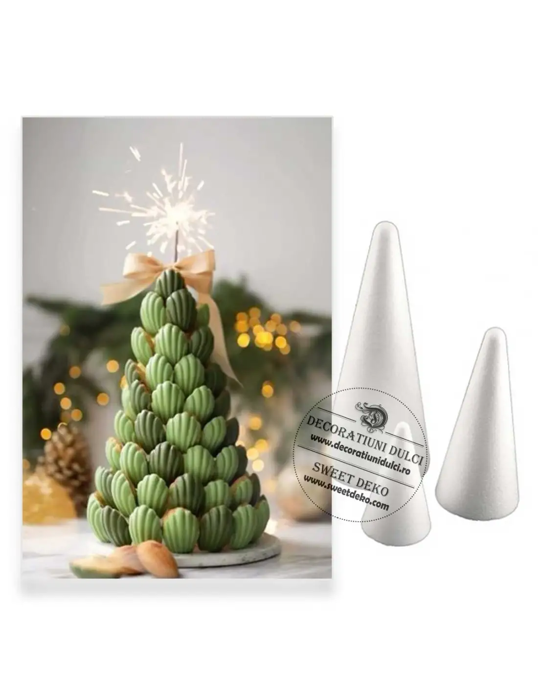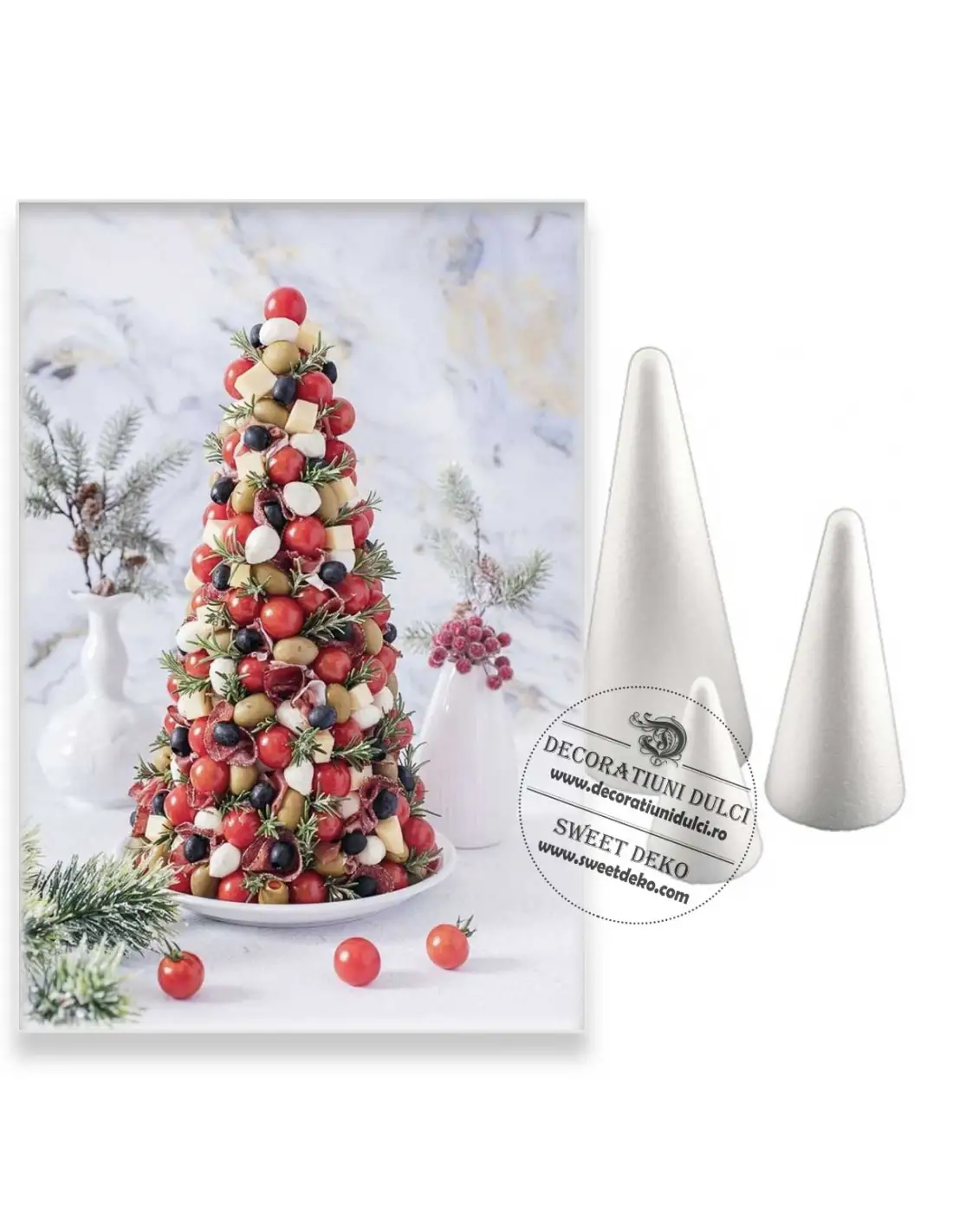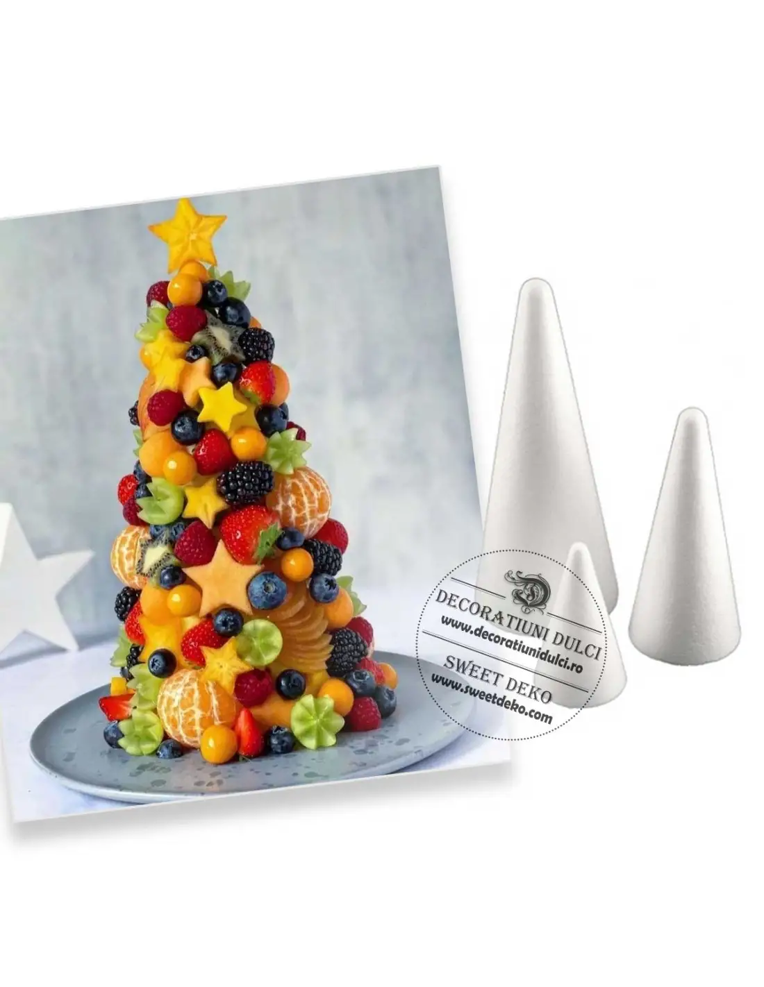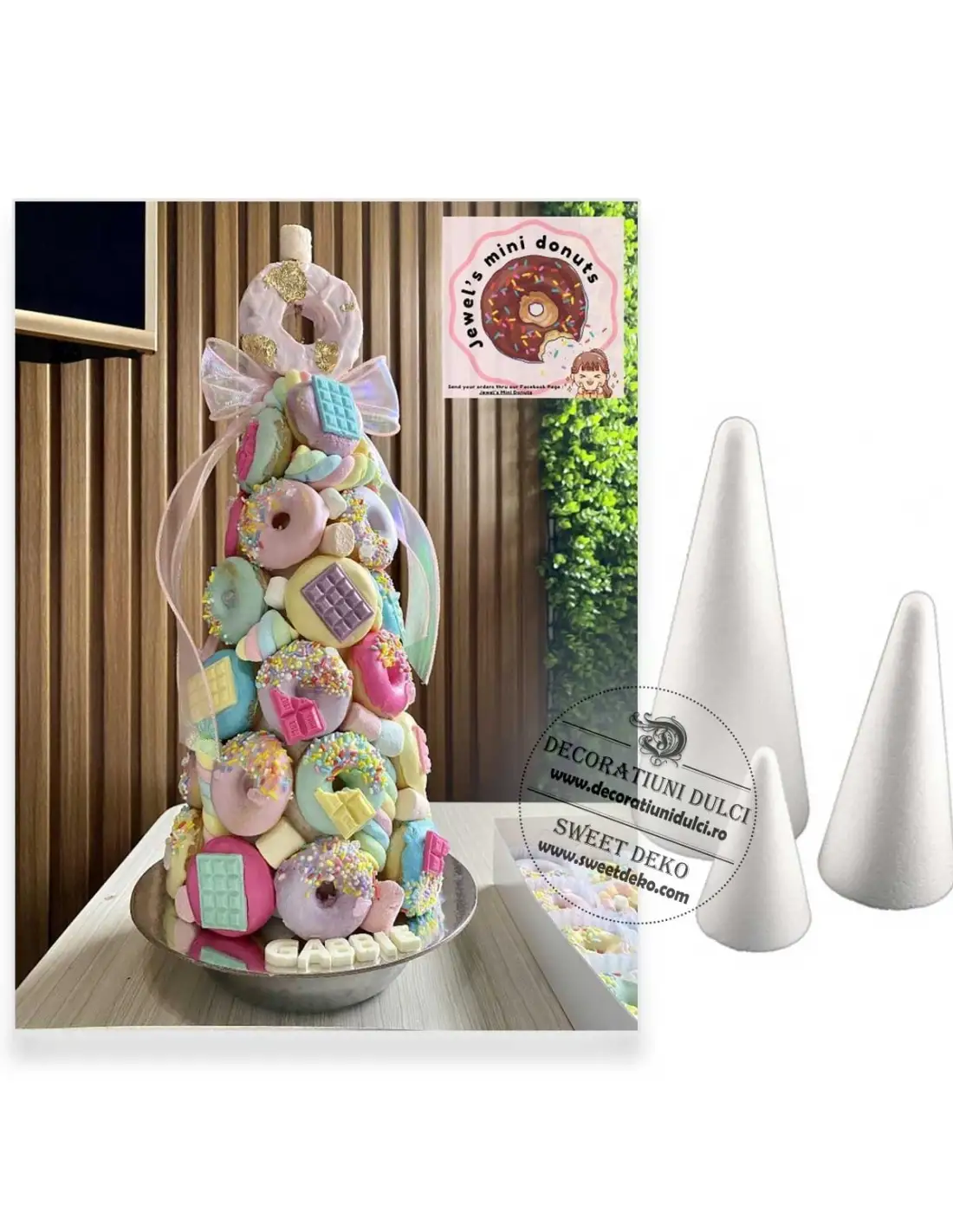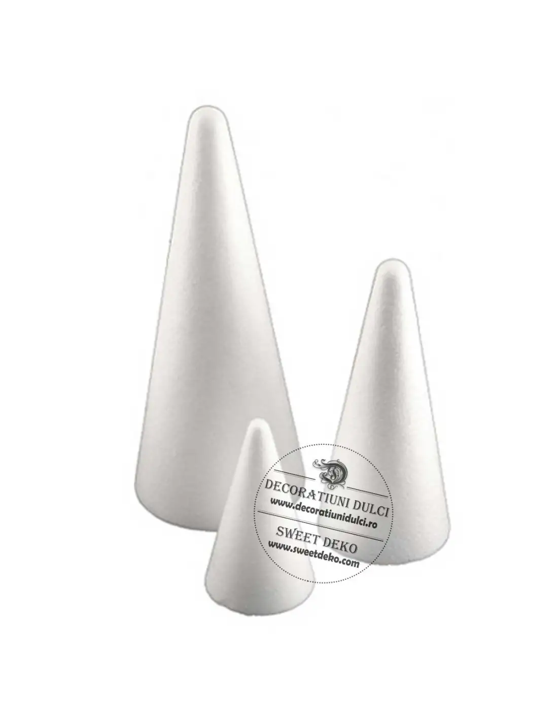 Con din polistiren (turnat), baza pentru diferite decoratiuni. Puteti crea un con cu aperitive, deserturi sau sa aplicati diferite globulete.