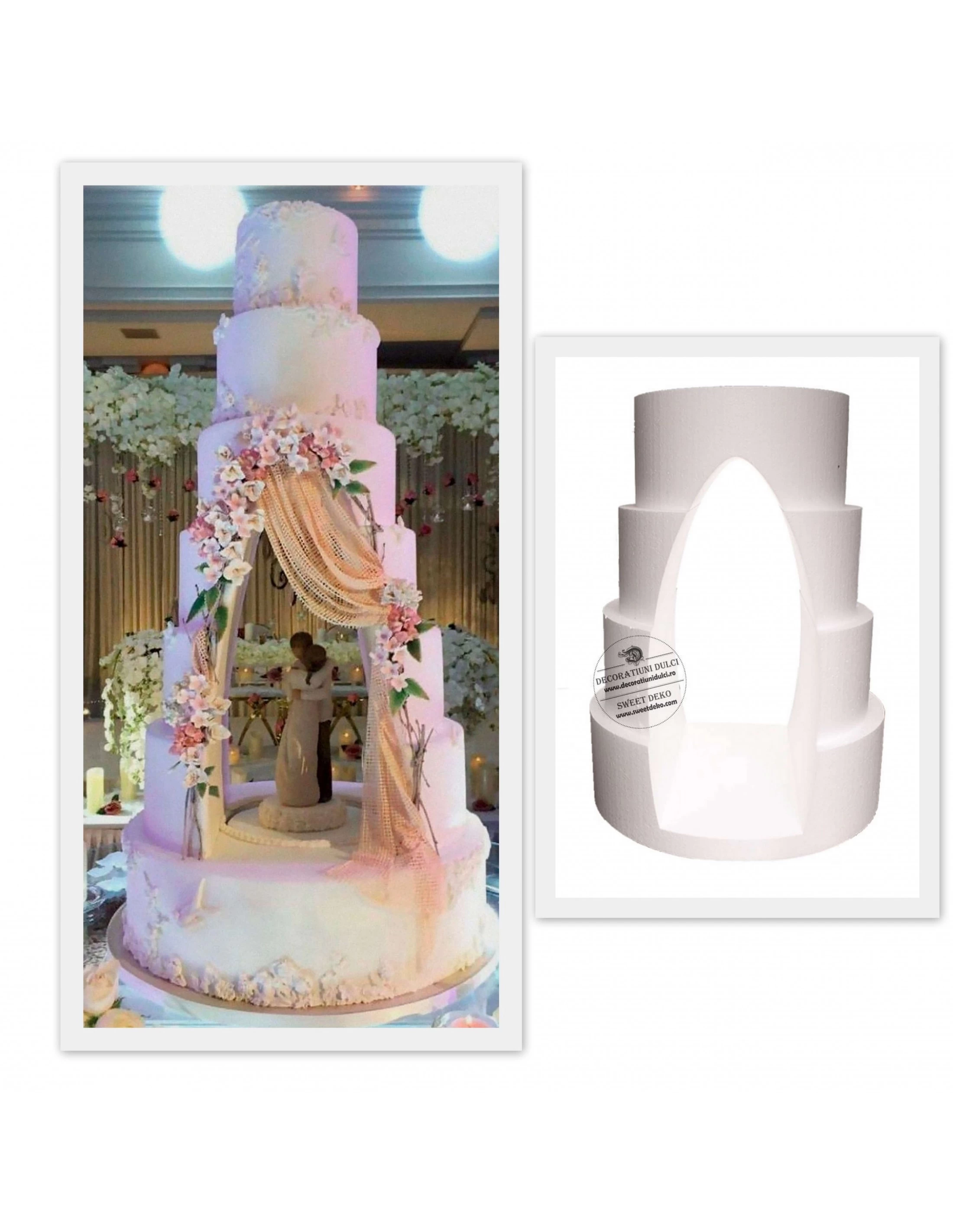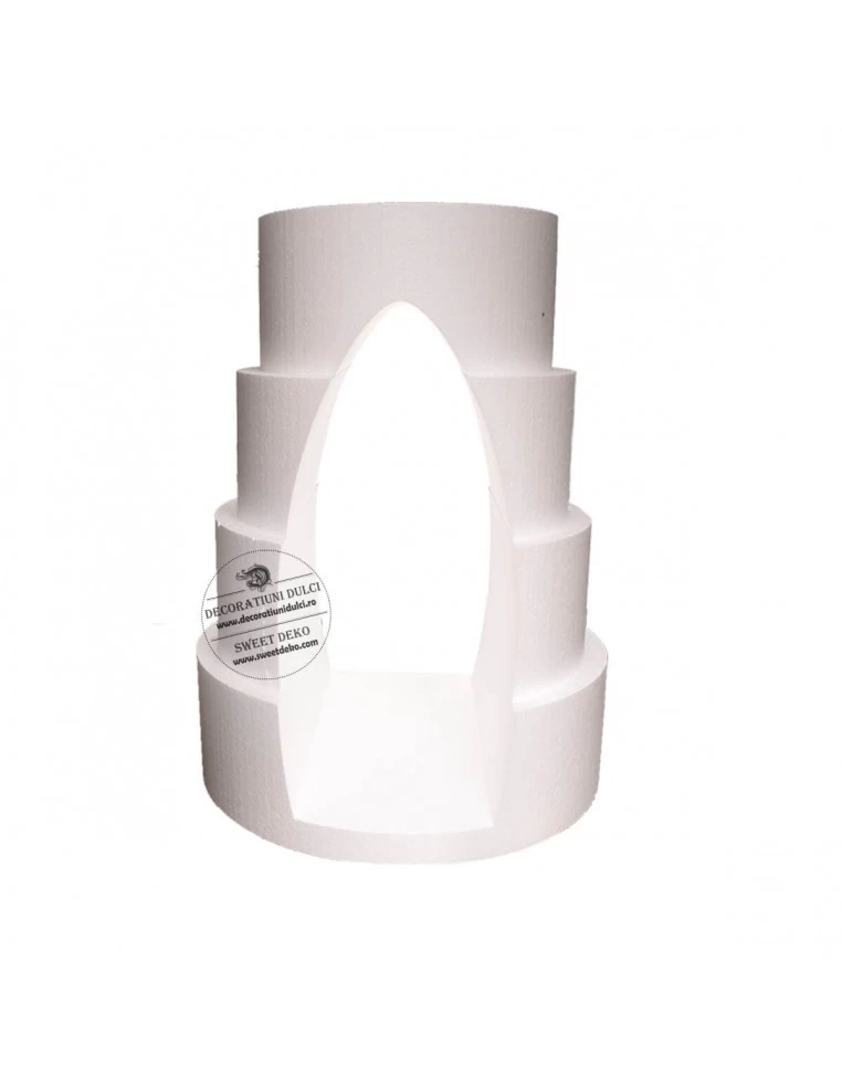 Set 4 etaje din polistiren pentru realizarea torturilor de prezentare pentru vitrine cofetarii, targuri, etc sau pentru sustinerea etajelor de tort in cadrul petrecerilor de cununie, nunta etc.