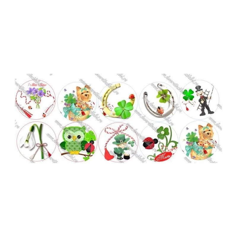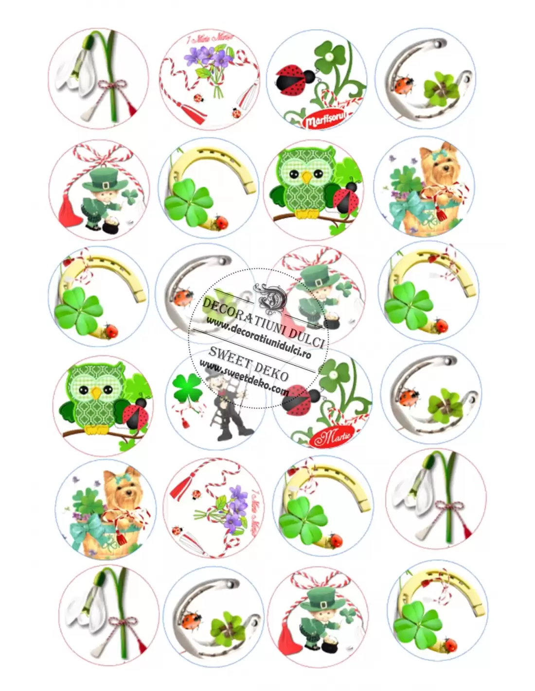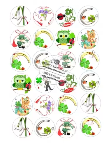 Cerculete ce se pot utilizata pentru decorarea brioselor, biscuitilor sau a martisoarelor dulci. Coala este cu putin mai groasa decat o foaie de hartie. Poate fi asezata pe orice material de acoperit: fondant, martipan, frisca vegetala, crema de unt, royal icing( dupa ce s-a uscat) si se poate lipi cu lipici alimentar, miere sau un strat subtire de royal icing.