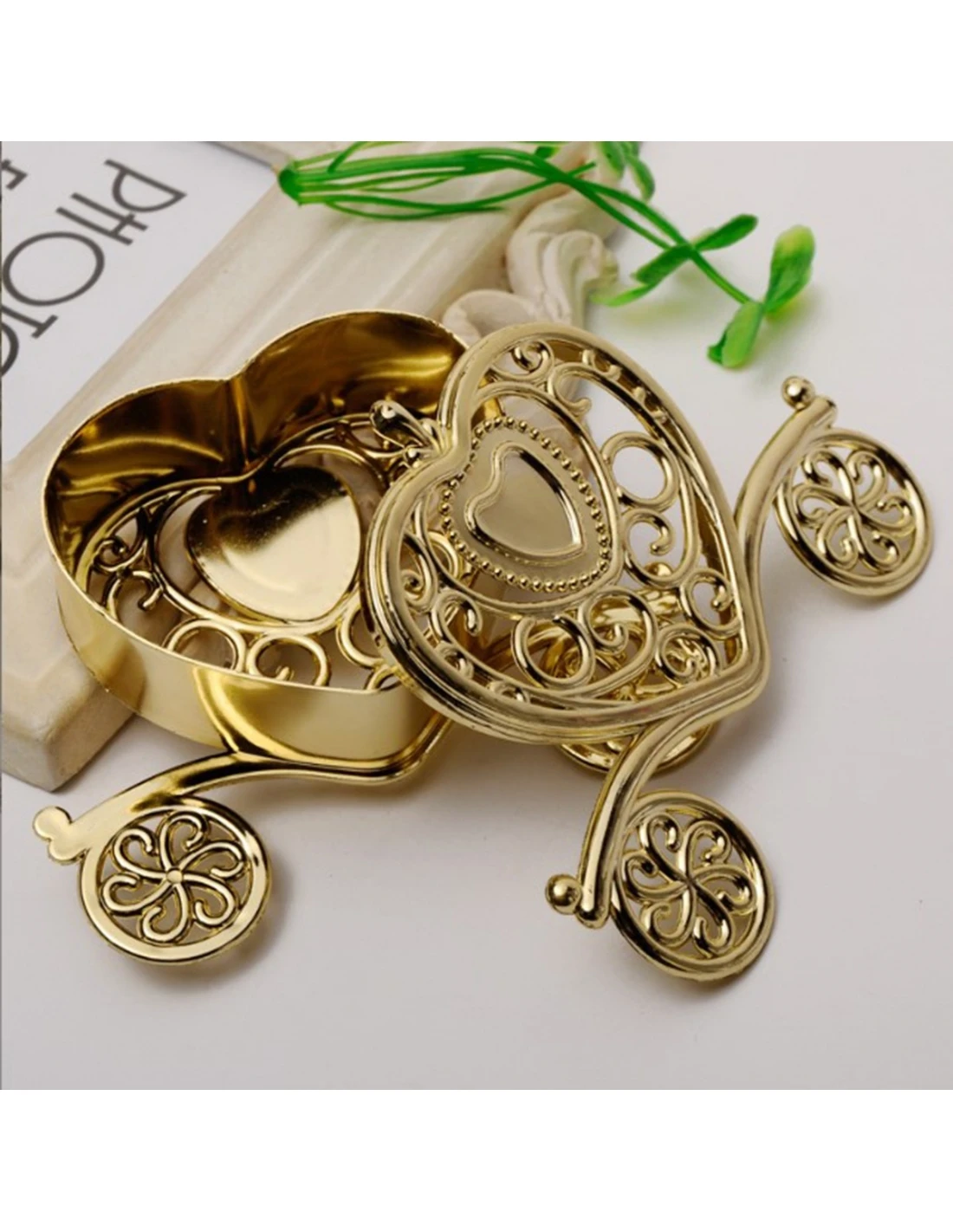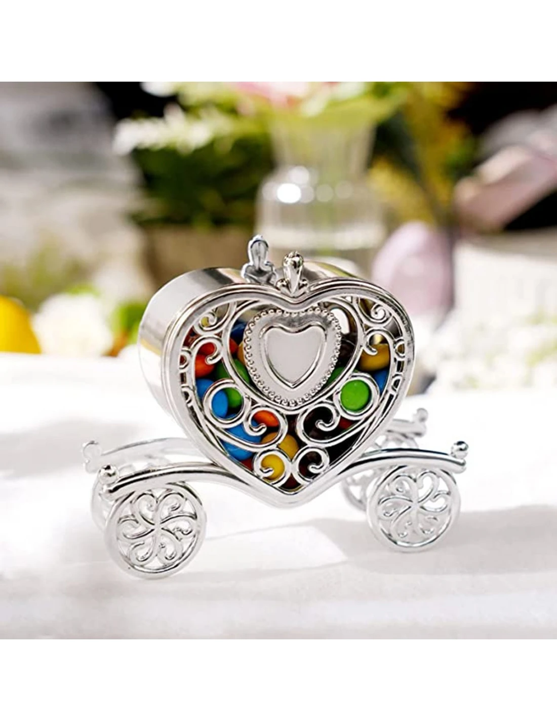Cutie caleasca inima baroque argintie cu capac, caseta cu dimensiuni mici, in care puteti adauga diferite deserturi sau alte mici elemente decorative, spre a fi oferite in dar invitatilor.