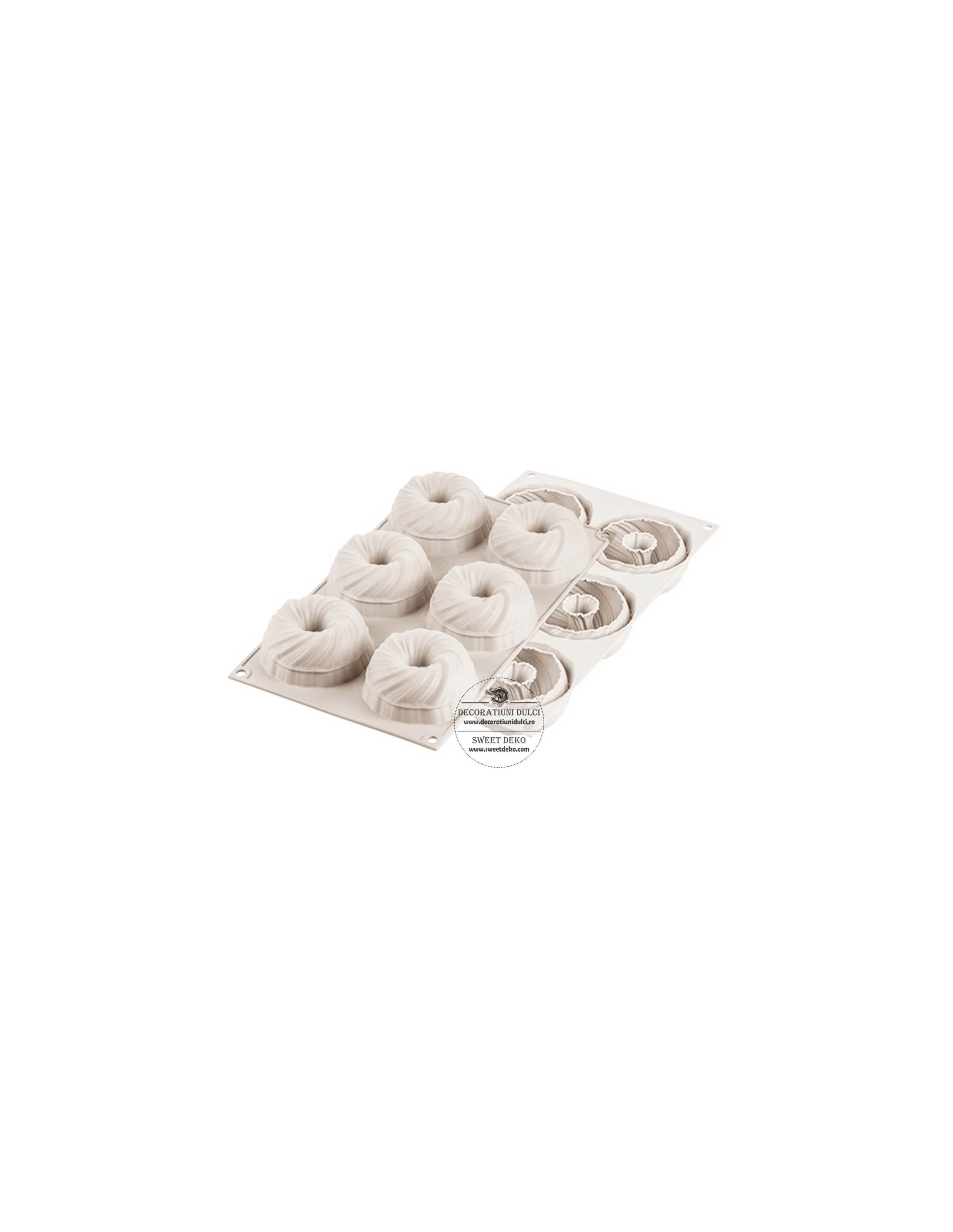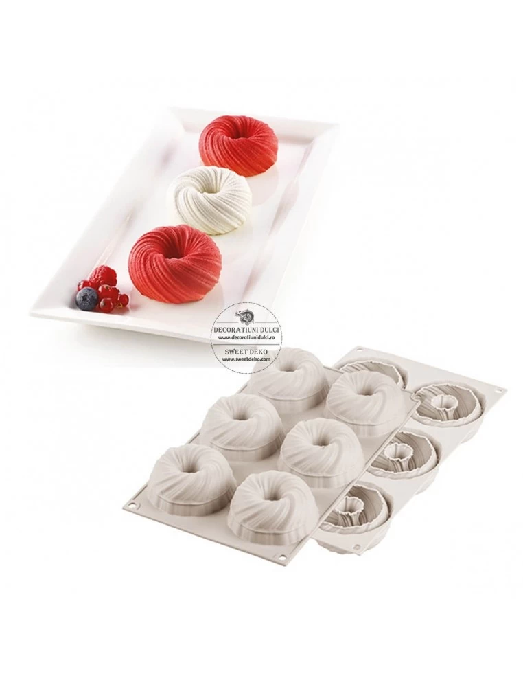 Matrita monoportii Mini Intreccio Ø7.5cm, Silikomart are o aparte de originalitate și modernitate. Modelul special întrețesut va oferi un decor rafinat deserturilor dvs. Fiecare cavitate a matriței este prevăzută cu o margine internă revoluționară care conferă o formă ușor rotunjită la baza preparatelor dumneavoastră.