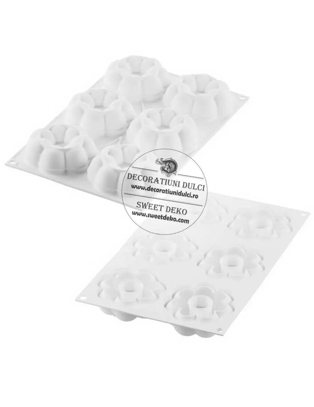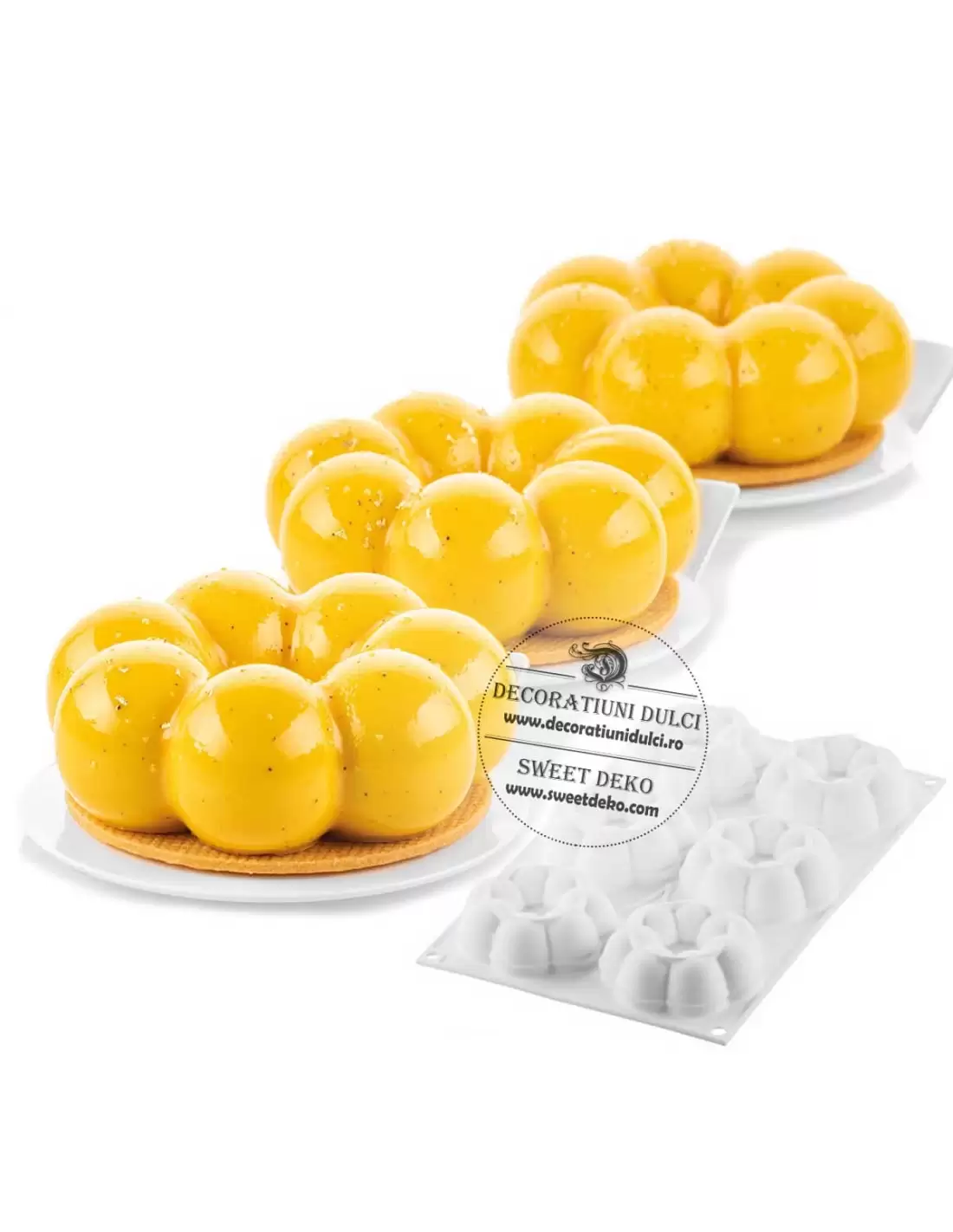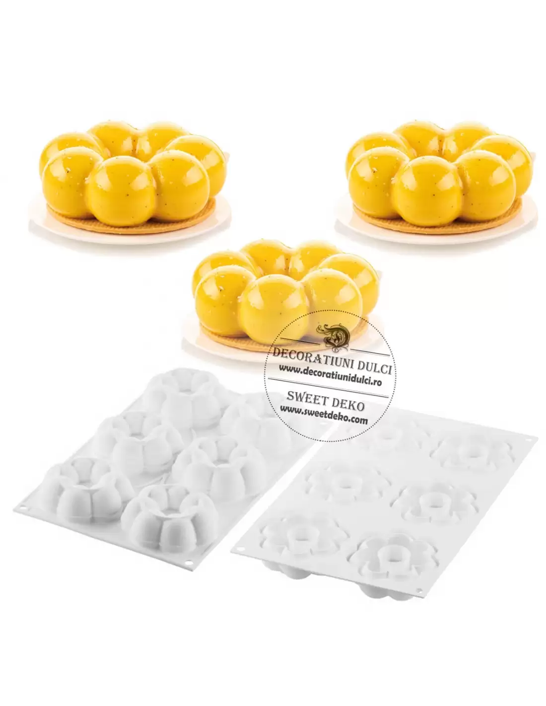 diametrul 8.2cm, h/adancime 2.9cm, vol 90ml x 6 cavitati = 540ml.