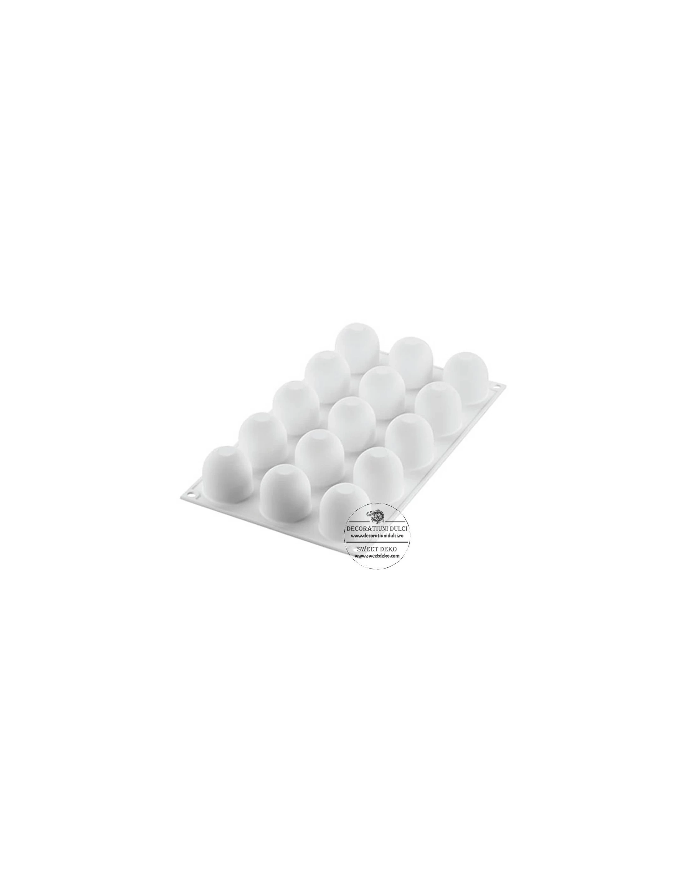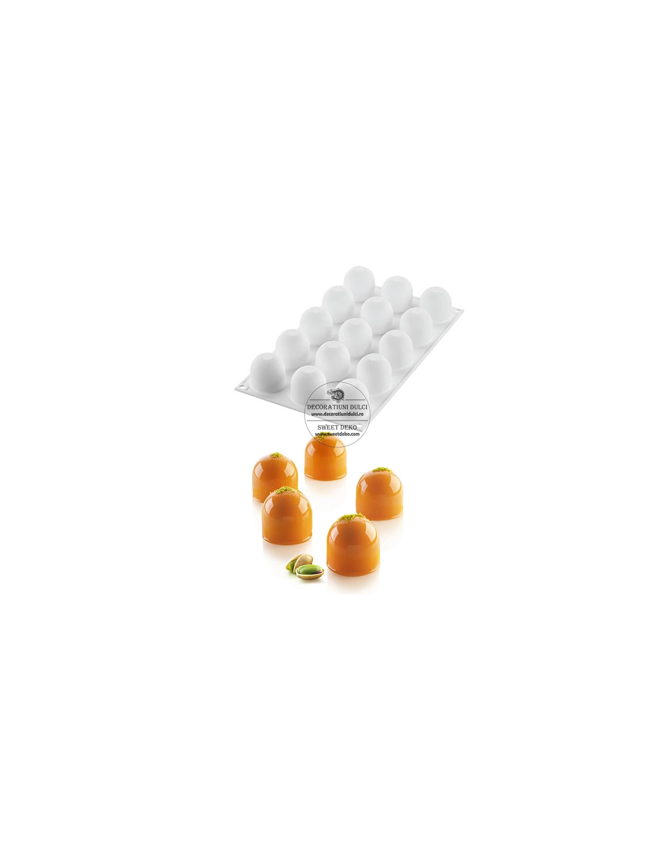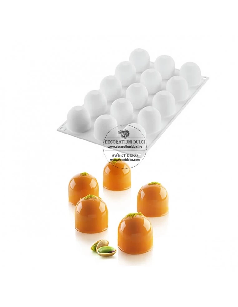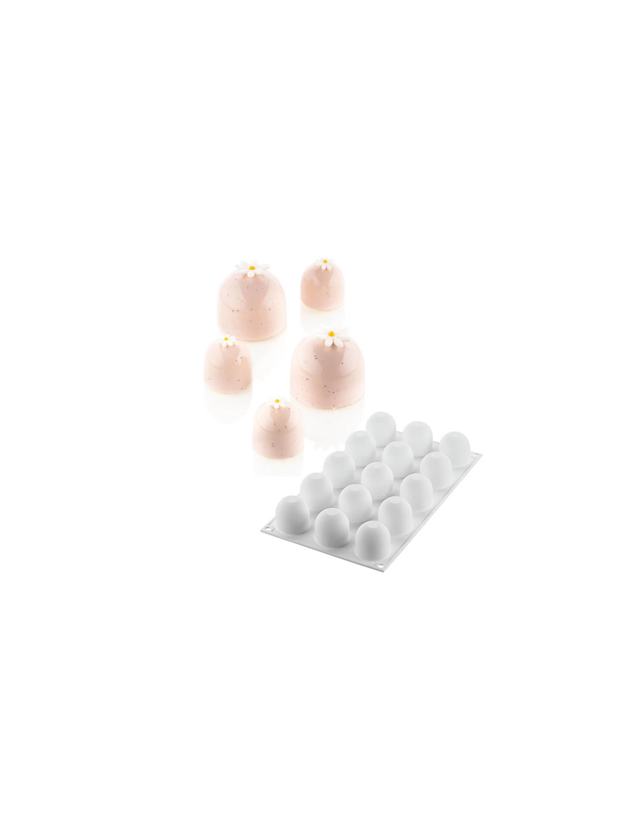 Matrita Dome 40 este compusa din 15 cavitati cu un volum de 40 ml fiecare. Perfecta pentru semifreddo glazurate sau catifelate, dar si pentru preparate coapte.