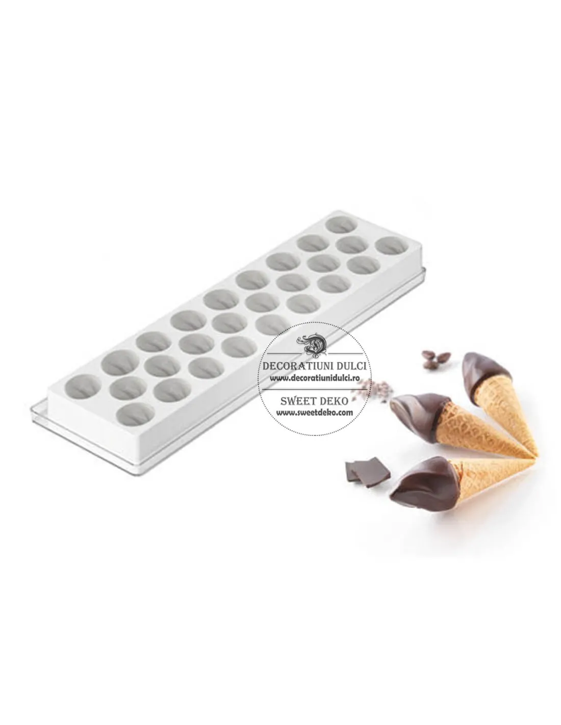 Conceput pentru a crea intr-o singura operatiune, rapida, 26 de mini portii de inghetata, bomboane de ciocolata cu o forma perfecta.