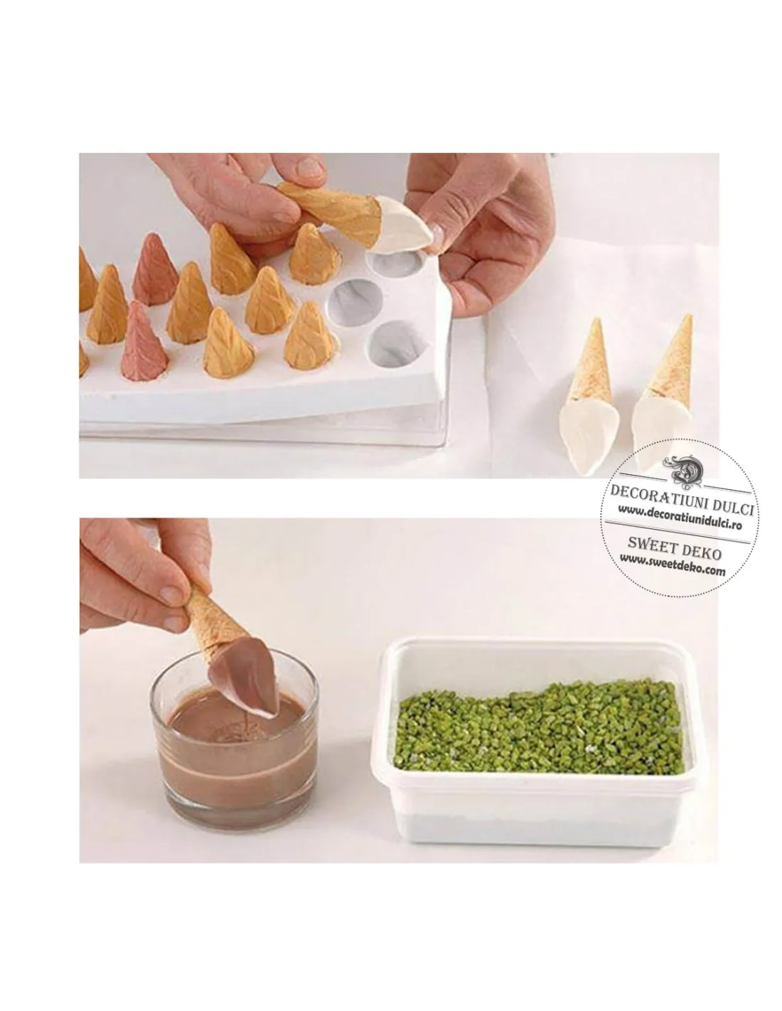 Mulaj in forma de flacara, spirala Flame Silikomart este un produs de cea mai inalta calitate menit sa garanteze optimizarea profesionala a timpilor de productie si rezultate impecabile. Versatila si foarte performanta, Fiamma regandeste inghetata la cornet intr-un mod original, propunand-o intr-o varianta mini atractiva, dar se preteaza si la crearea de praline si bomboane imbietoare.