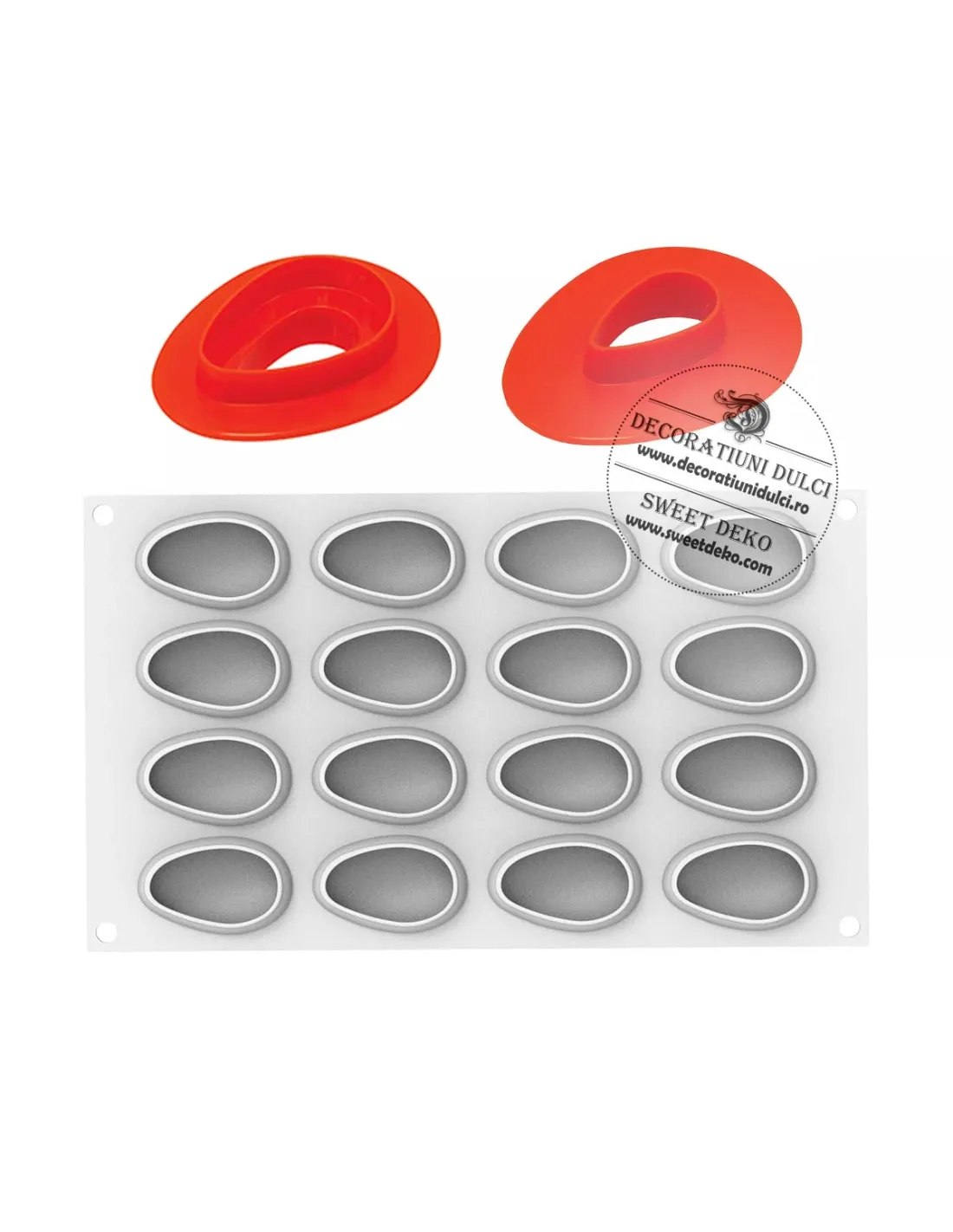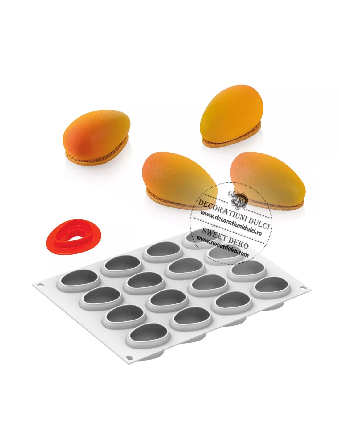 Kit profesional pentru realizarea deserturilor mini tip mango, ideal atat pentru preparate reci, cat si pentru coacere. Setul include o forma din silicon platinum, de inalta calitate si un cutter din ABS, perfect pentru obtinerea unor baze crocante si inserturi personalizate, cu finisaj precis si uniform.